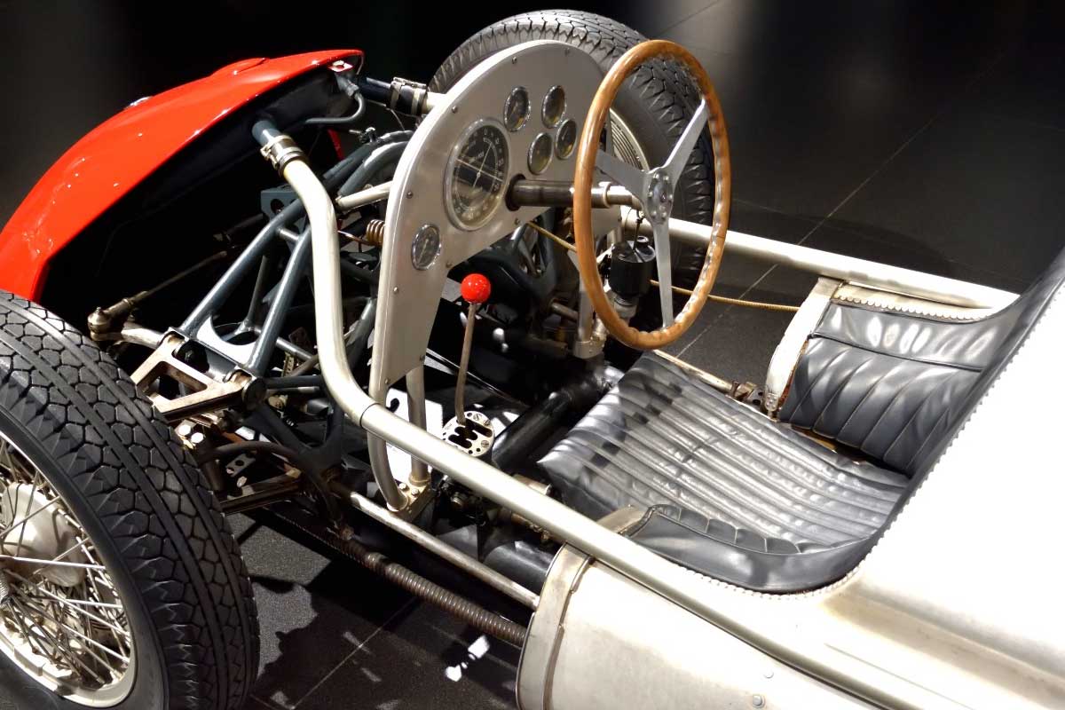 Während Mercedes die meisten Lorbeeren einheimste, war es die Auto-Union, die mit der Enthüllung des Typ-A-Rennwagens für Aufsehen sorgte. Die von Ferdinand Porsche entworfene Maschine revolutionierte den Rennsport mit einer neuartigen Architektur des Motors, der in der Mitte hinten hinter dem Fahrer platziert war. Der Fahrer befindet sich weit vorne im Auto, mit der Kavallerie, einem V16-Motor, in seinem Rücken. Wir sind mehr als zwanzig Jahre vor der Revolution des Heckmotors in der Formel 1 mit Cooper und Lotus! Das Konzept wurde ständig weiterentwickelt und gipfelte im C-Type von 1936, der über einen Aluminiumträgerrahmen und einen aufgeladenen V16 mit 520 PS verfügte! Mit ihrem Heckmittelmotor und ihrer dämonischen Kraft waren die Auto-Unions sehr heikel zu fahren, um nicht zu sagen gefährlich, aber ihre Leistung war erstaunlich.