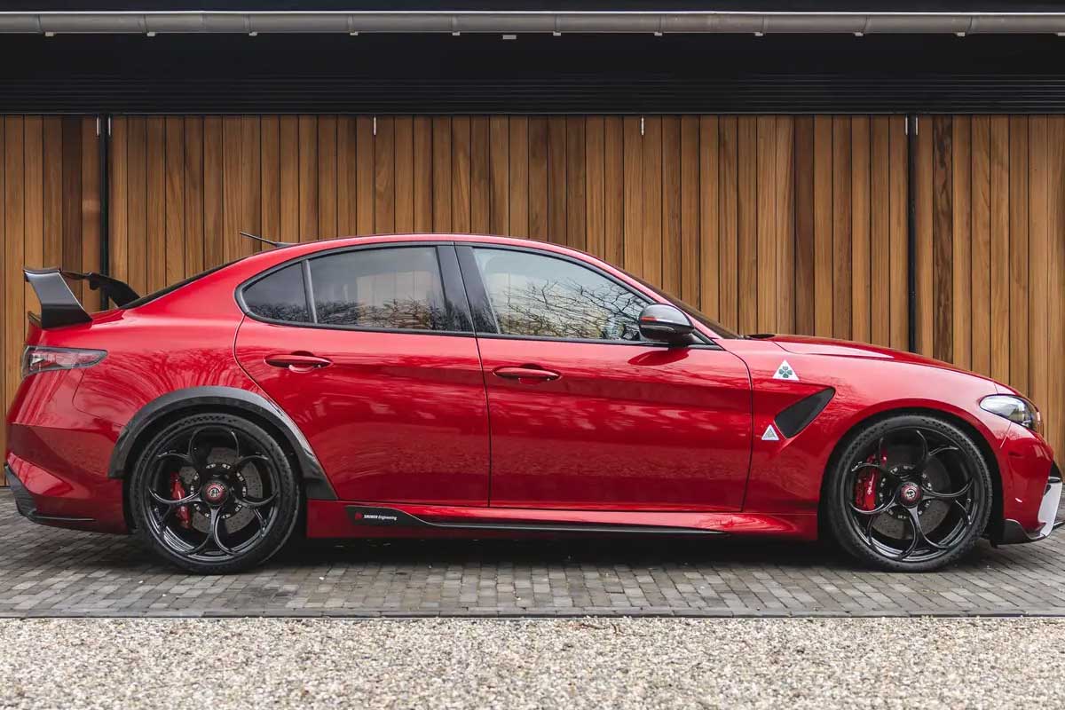 Für diejenigen, die von der muskulösen Silhouette des GTAm träumen, aber vom Budget abgeschreckt werden, gibt es eine Alternative. Diesen Sommer bot ein Maserati-Händler in Frankreich an eine Giulia Quadrifoglio 2016 Schaltgetriebe mit einem kompletten Bodykit von der Koshi Group ausgestattet. V6-Biturbomotor mit 510 PS, GTAm-Look (Motorhaube, Kotflügel, Diffusor, Spoiler...), aber ohne die technischen Raffinessen und die Exklusivität des echten. Und das alles für 75.000 €. Weit entfernt von den 300.000 €, aber natürlich ohne den Sammlerwert.