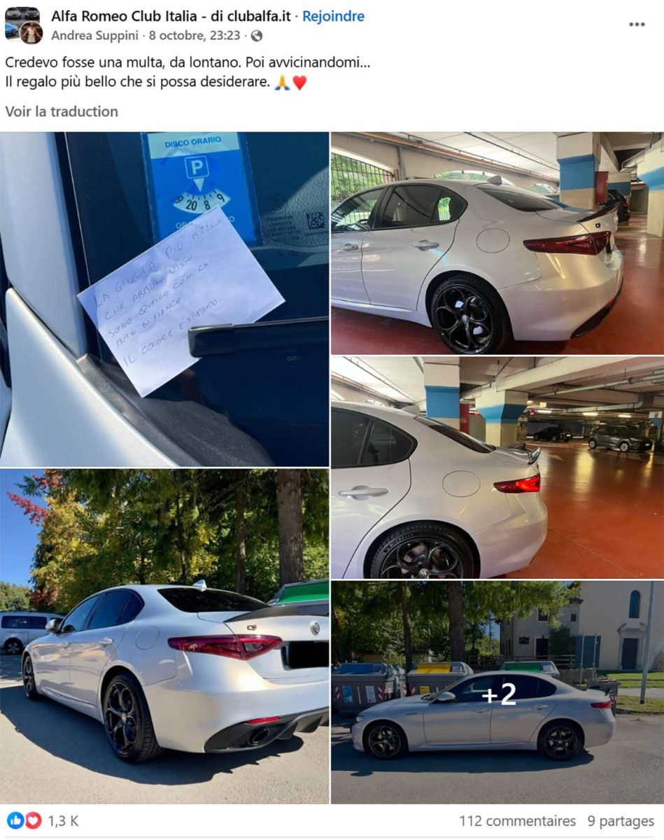 "Ich dachte, es wäre ein Strafzettel", erzählt Andrea in einer Facebook-Gruppe von Alfa Romeo-Besitzern. In Wirklichkeit war es das schönste Geschenk, das man sich vorstellen kann".