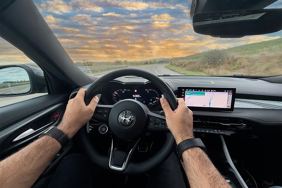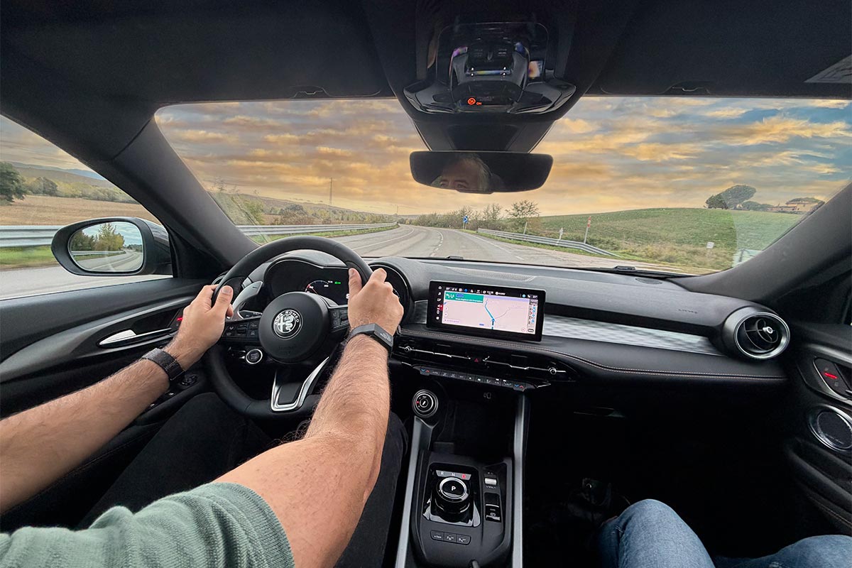 Es ist eine Veloce-Version: Die Leistung und die Straßenlage sind da, aber ich habe nicht die direkte Verbindung zur Straße gespürt, die ich von einem Alfa Romeo erwarte. Ich würde sogar so weit gehen zu sagen, dass mich das Gefühl des 280 PS starken Junior Veloce vielleicht mehr überzeugt hatte. Der Vergleich mit dem Stelvio, der auf der Pressekonferenz erwähnt wurde, war also gewagt. Auf dem Papier kann der Tonale in Bezug auf die Kurvenleistung mithalten, aber beim Fahrgefühl ist der Unterschied deutlich.