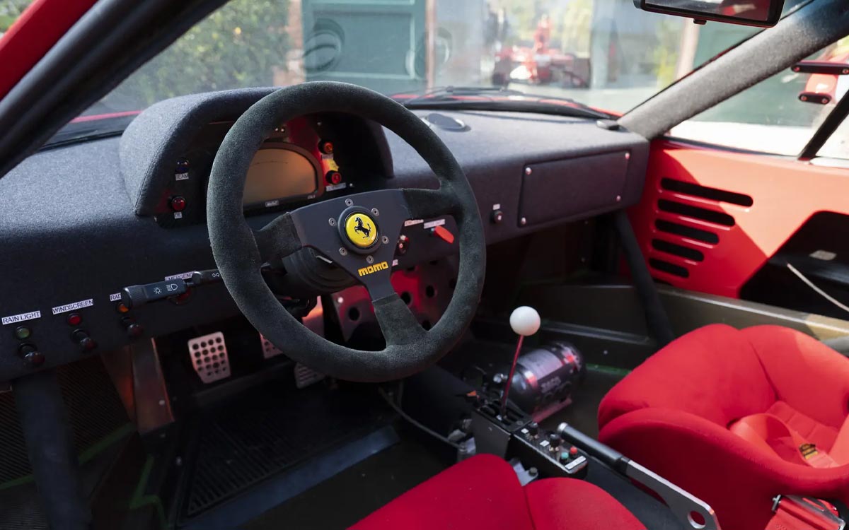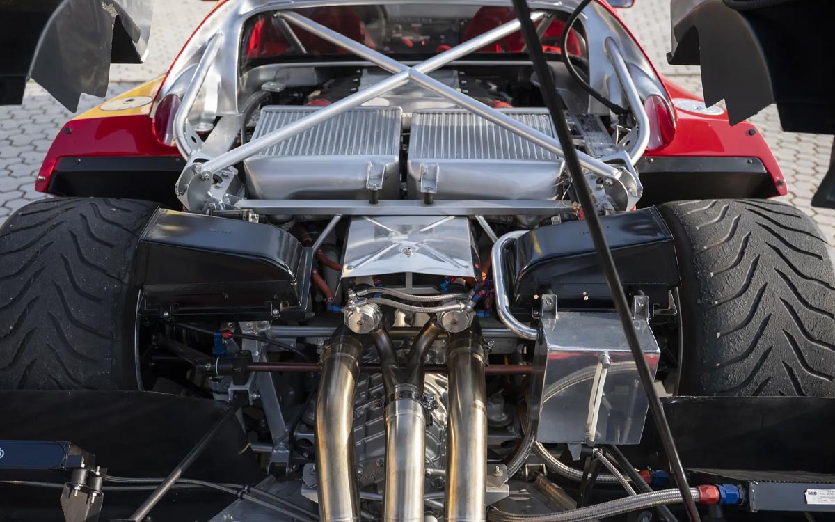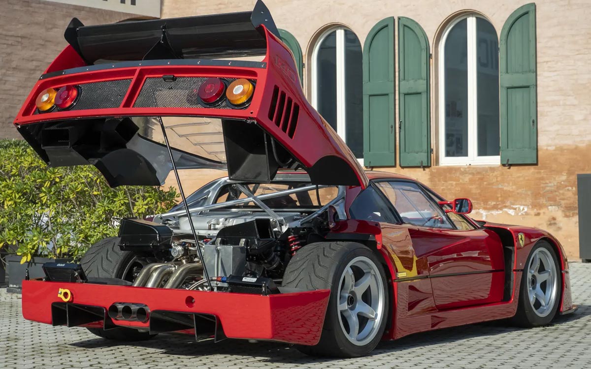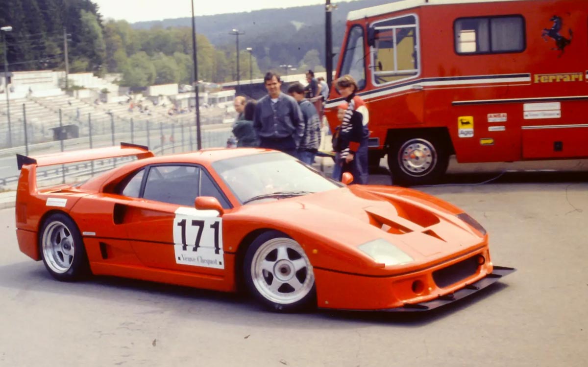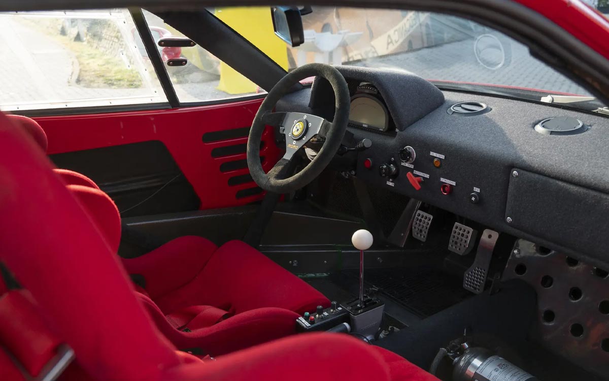 Um das volle Potenzial des F40 auszuschöpfen, holte er sich einen klangvollen Namen ins Boot: Peter Sauber, den späteren Chef des gleichnamigen Formel-1-Teams. Unter seiner Aufsicht erhält der V8-Biturbo größere KKK-Turbos, einen höheren Ladedruck, verstärkte Komponenten ... und eine Vorbereitung, die eines Rennwagens würdig ist.