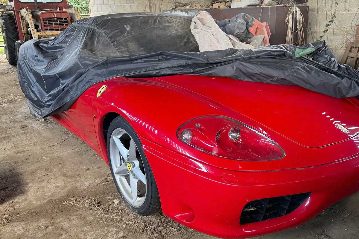 Dieser Ferrari 360 Spider wurde fast fünf Jahre lang unter einer einfachen Plane vor den Blicken der Öffentlichkeit verborgen und soll nun bei einer Auktion ohne Mindestpreis wieder zum Vorschein kommen. Der Ferrari aus dem Jahr 2001, der in einer Scheune in Northamptonshire, Großbritannien, gelagert war, wurde seit mehreren Jahren nicht mehr gefahren und ist mit seinem V8-Saugmotor und dem seltenen Sechsgang-Schaltgetriebe in der Zeit eingefroren. Eine Konfiguration, die in Zeiten von Ferrari aus dieser Zeit mit Schaltgetriebe werden immer begehrter. In unverändertem Zustand angeboten, mit seiner Geschichte und seinen Jahren des Dornröschenschlafs, kommt er zur Auktion, bereit, ein neues Kapitel zu schreiben.