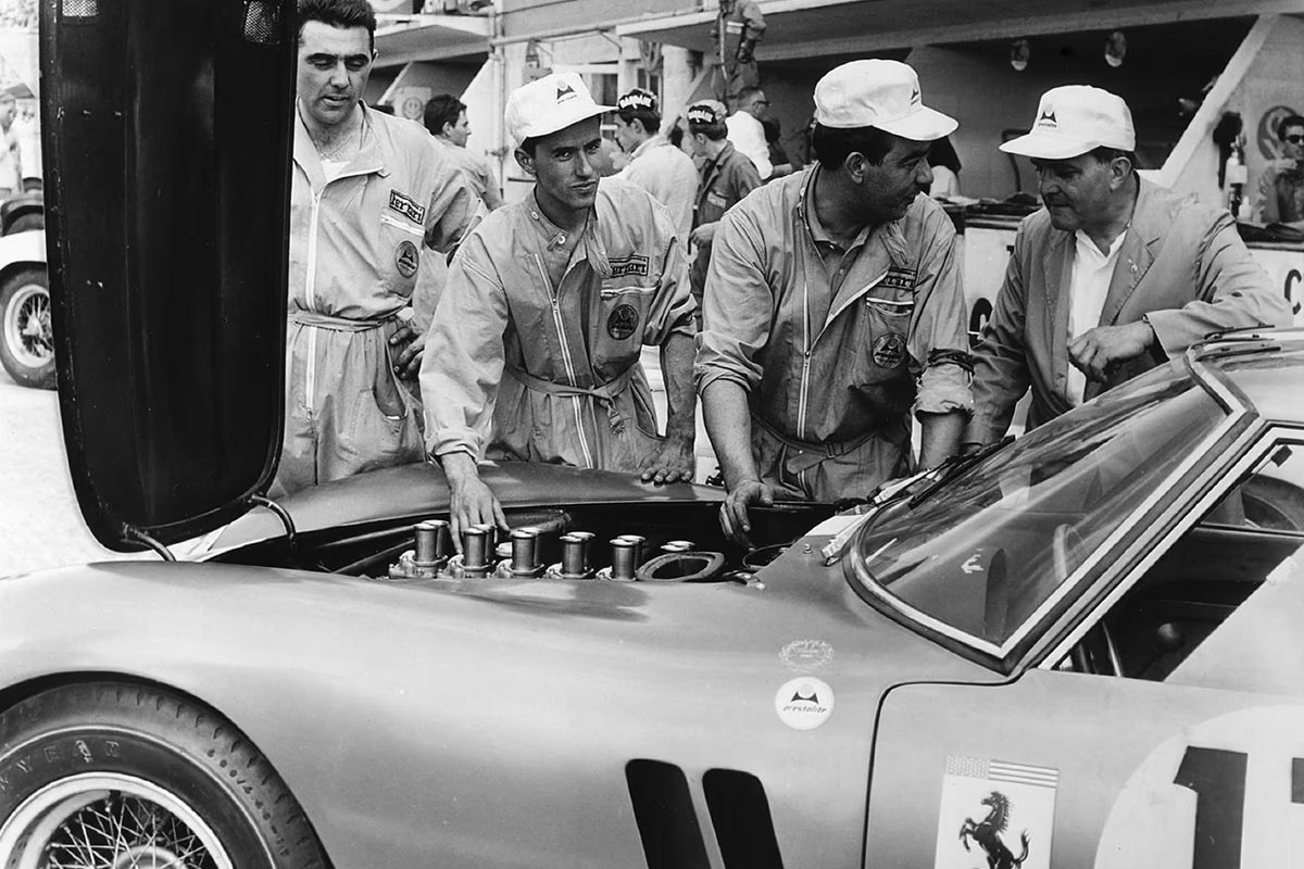 Der 250 GTO (Gran Turismo Omologato) wurde im Februar 1962 in Maranello auf der traditionellen Ferrari-Pressekonferenz vor der Saison offiziell vorgestellt und war nie ein reines Straßenauto. Er war zwar für den legalen Straßenverkehr zugelassen, aber in erster Linie als Rennwaffe für die GT-Klasse der FIA-Meisterschaft konzipiert. Zu einer Zeit, als die Grenzen zwischen Rennwagen und Zivilfahrzeugen noch verschwommen waren, verkörperte der GTO den radikalsten Ansatz von Ferrari: Er verkaufte einigen ausgewählten Kunden ein Auto, das fast schon rennfertig war. Unter der anfänglichen Leitung des Ingenieurs Giotto Bizzarrini und später von Mauro Forghieri nach dessen stürmischem Abgang, der durch Meinungsverschiedenheiten mit Enzo Ferrari ausgelöst wurde, nahm das Projekt eine fast besessene Dimension an. Jedes Element wurde auf Leistung optimiert, ohne Kompromisse bei der Ausdauer, der Königsdisziplin der 1960er Jahre.