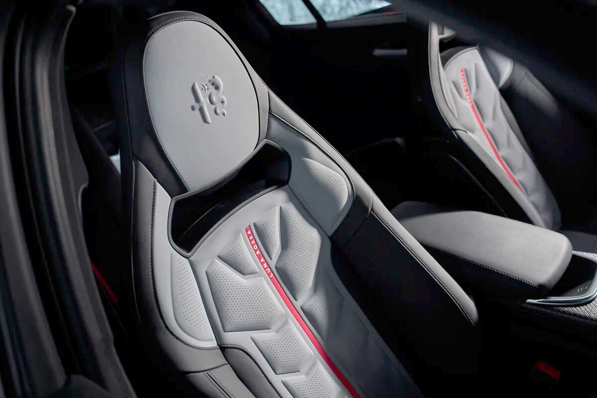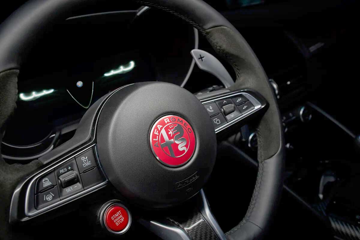 Visually, this special series immediately stands out. The bodywork adopts a hand-applied tint, evoking the metallic effect of steel and the reflections of a racing boat's hull. For the first time in the brand's history, the Alfa Romeo logos feature a red background. The 19-inch wheels also feature a red reminder, while the roof, scudetto and rear-view mirror caps all feature exposed carbon.