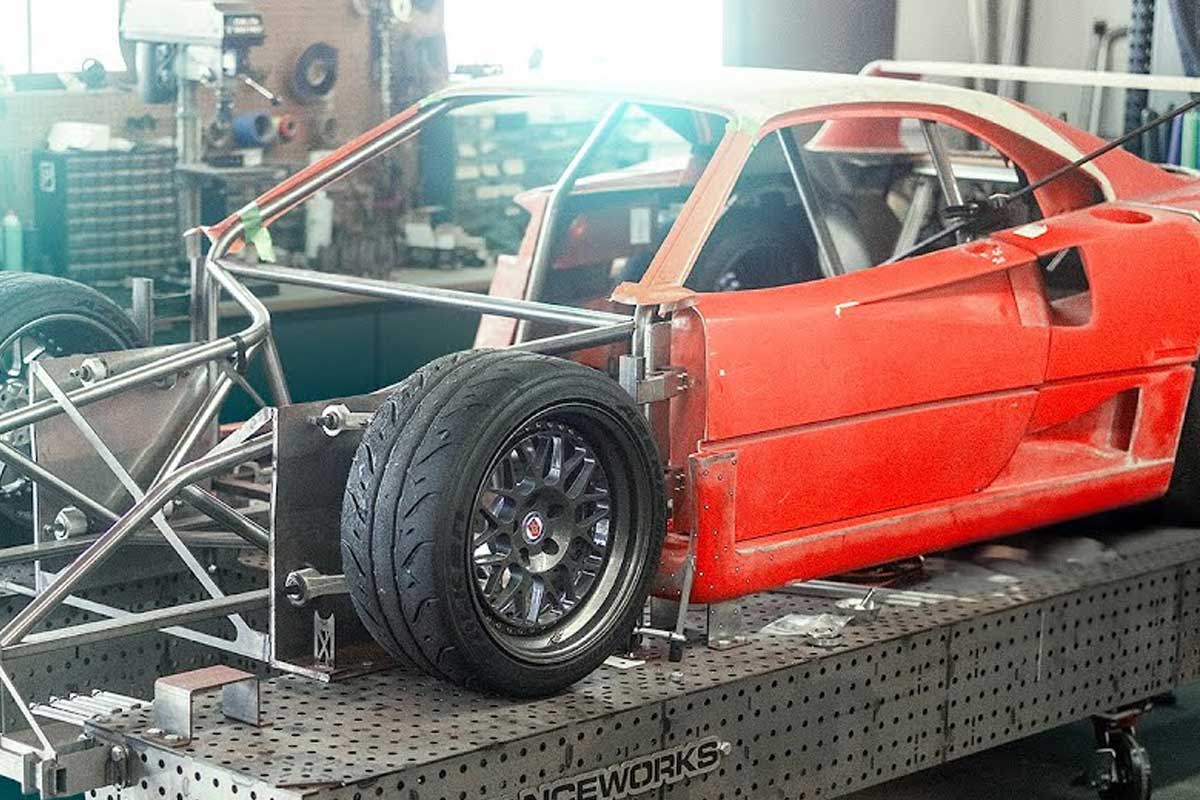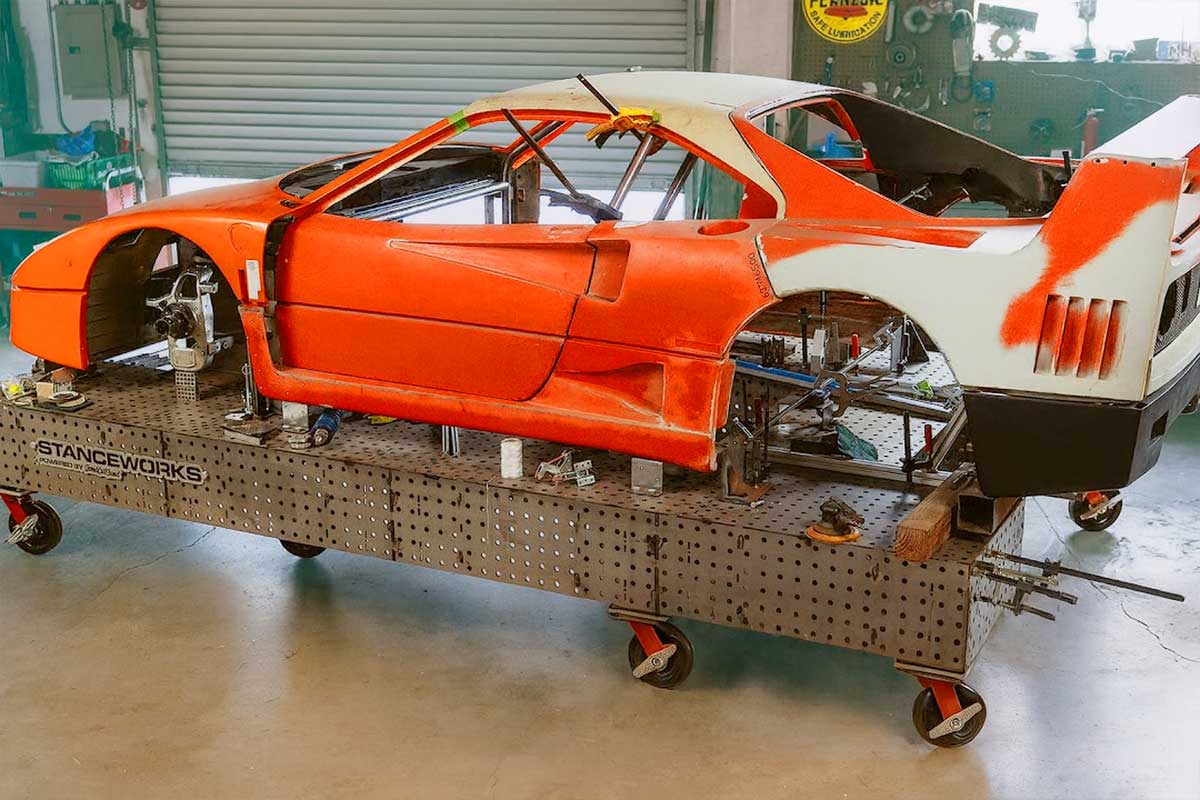 Returning to the Stanceworks project, it all began in March 2024, when Burroughs acquired a complete F40 body. The first delivery included not only the front end, but also the doors, roof, rocker panels and rear fenders, all genuine stock parts imported from Europe. A second delivery provided the underpinnings and the entire rear section. Burroughs then began fabrication of a custom tubular chassis, designed to be lighter and stronger than the F40's original structure, thanks to advances in materials. A body faithful to the supercar's design by the late Nicola Materrazzi will be grafted onto this structure.