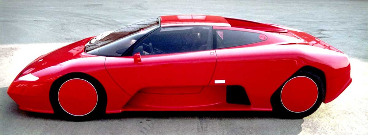 Beneath a tarpaulin was a resolutely futuristic-looking supercar in its day, the Chubasco. Presented in its still static form (mock-up) - the finished product was due to be unveiled in early 1992 - it completely seduced the admiring guests. The Trident lends itself to dreaming, directly challenging Lamborghini and Ferrari, whose 348 didn't win all the votes.