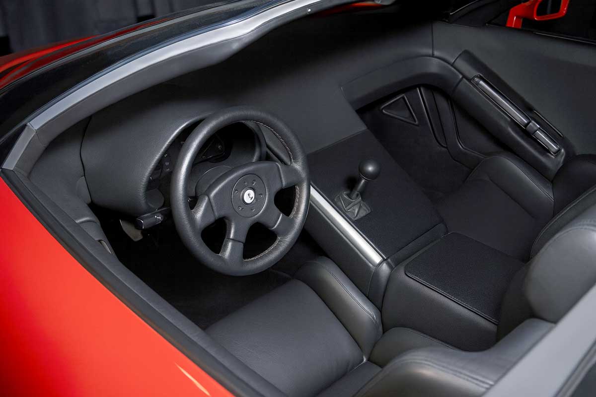 The ultimate feature is the electric sunroof, which can be retracted over the engine compartment for open-air driving... (or extra cooling, just in case!). The two-seater cabin features two wrap-around seats, separated by a central tunnel that ensures optimum support and contributes to the car's aesthetic balance.