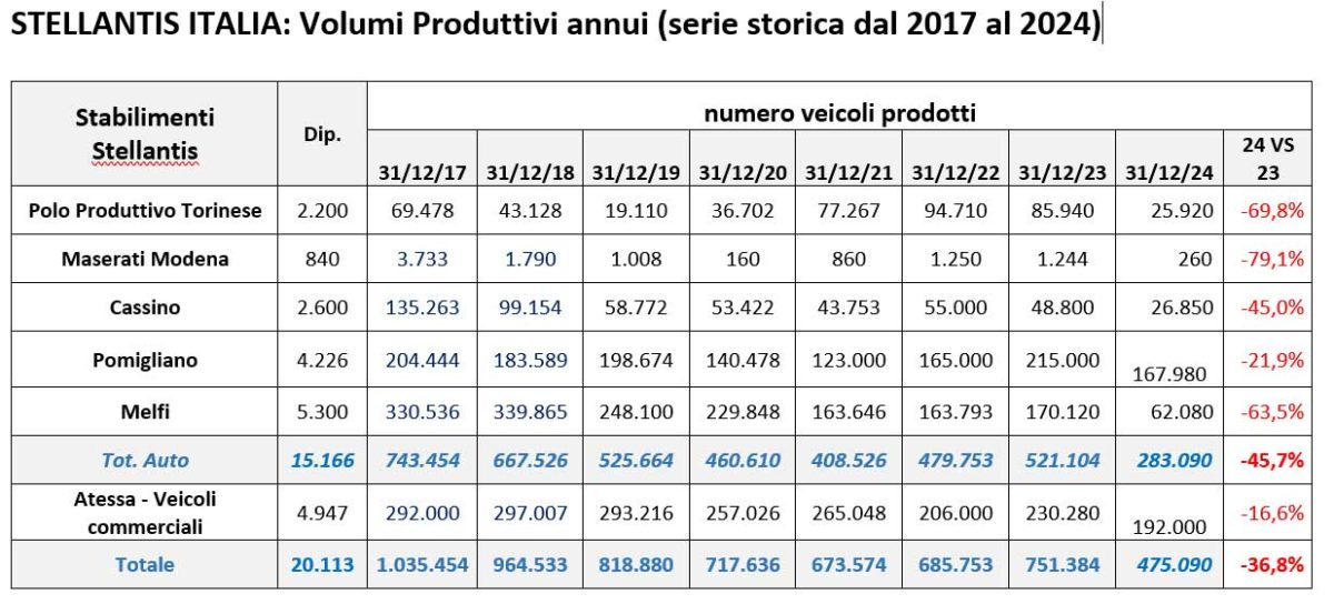 The facts are clear: the production of Stellantis in Italy is collapsing. According to figures published by the FIM-CISL trade union, the Group produced 265,490 vehicles in the third quarter of 2025, down 31.5 % on the same period last year. A situation deemed "dramatic" by the union, which points to a profound industrial crisis affecting all the Group's Italian plants.