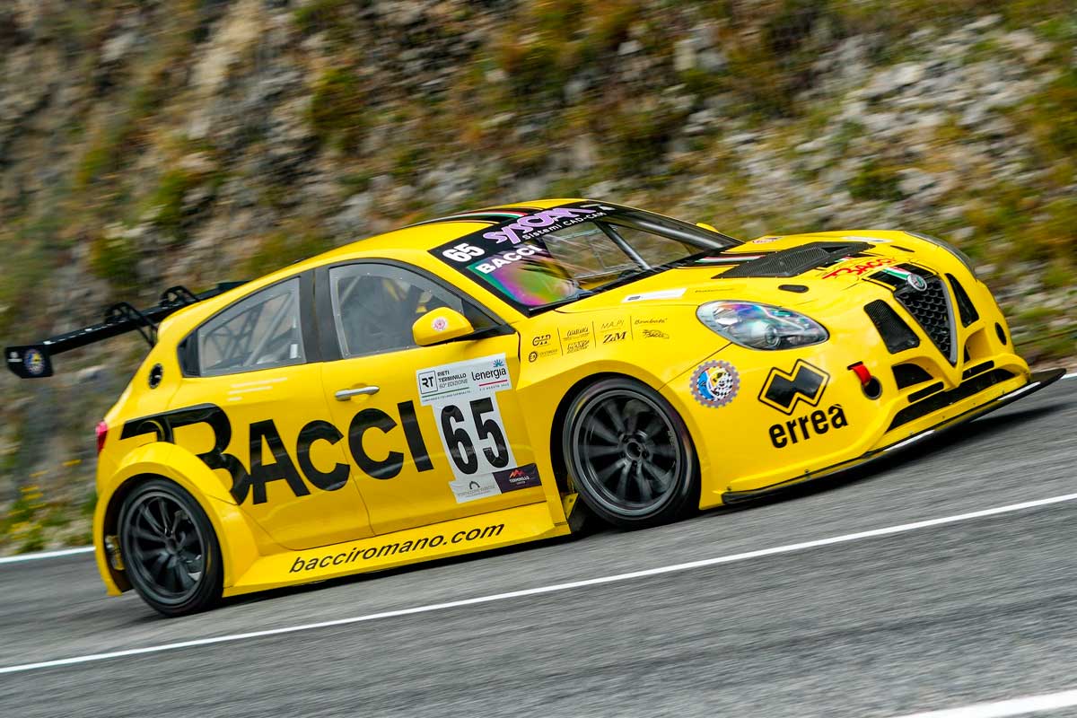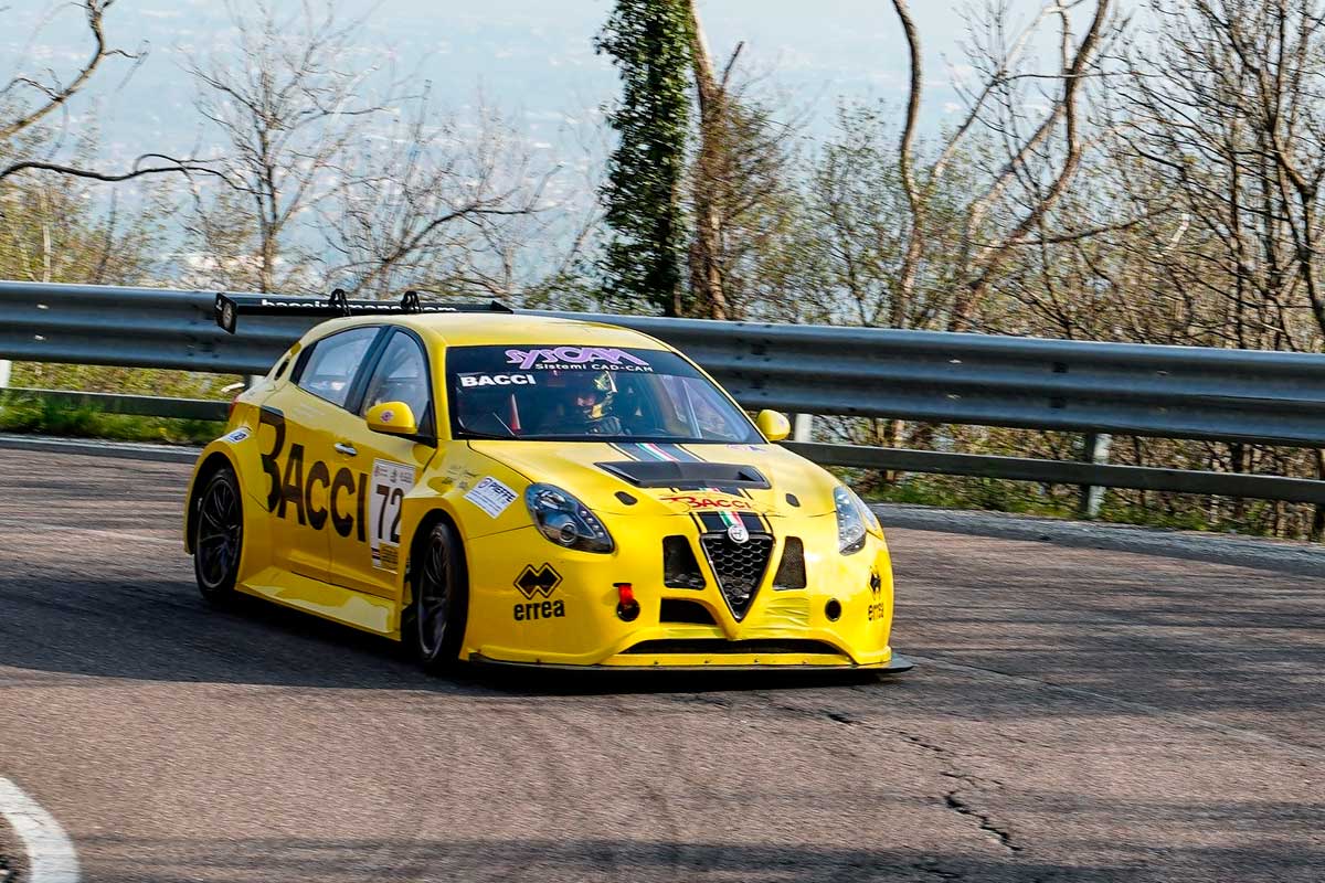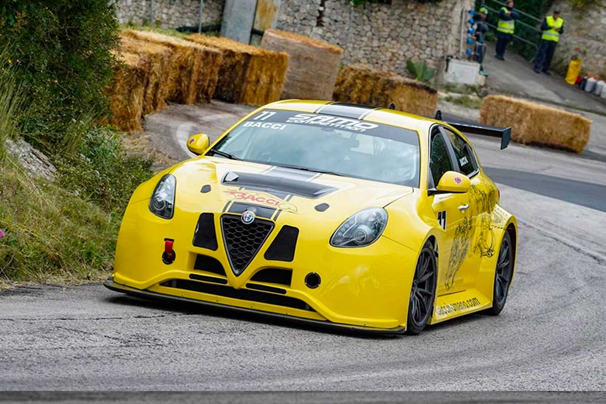En las carreras de subida de pendientes, se aplica un multiplicador de equivalencia de 1,7 a los motores turboalimentados (en comparación con los atmosféricos), de ahí la presencia de este Giulietta en la categoría de hasta 3000cc. Matteo Bacci eligió el Giulietta por su tracción delantera, algo poco habitual en la categoría E1, donde suelen dominar los coches de tracción trasera, como los BMW. Pero la tracción delantera ofrece ventajas al salir de curvas cerradas, de las que hay muchas en las colinas italianas.