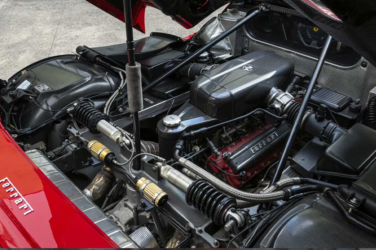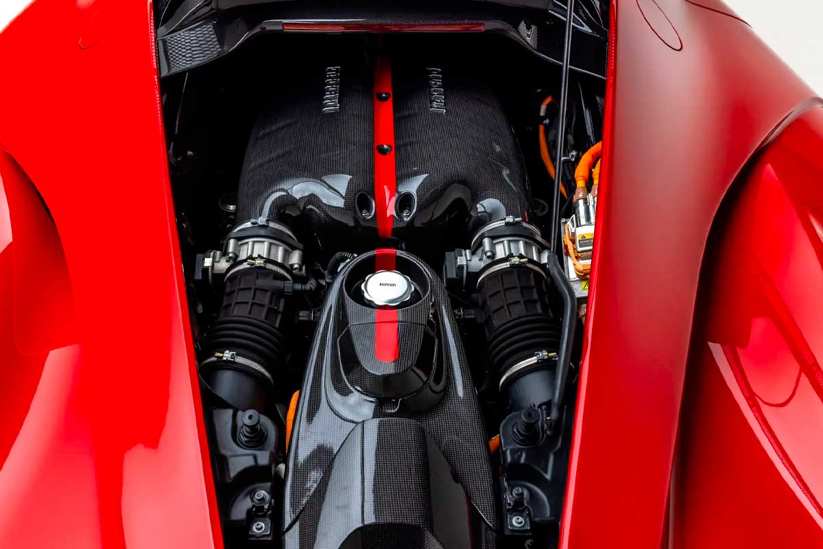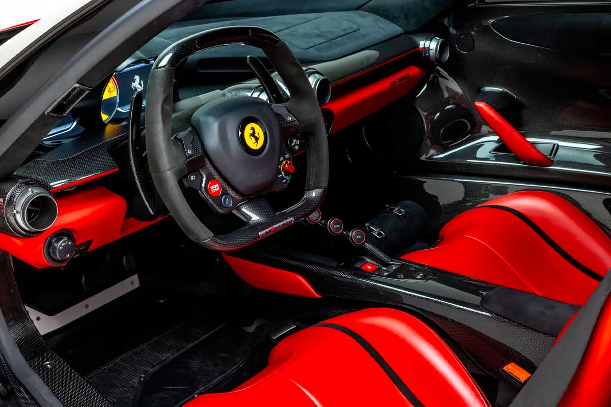 La incorporación del Ferrari LaFerrari cambia la lectura de esta venta. Porque no se limita a "completar" el trío, sino que cuenta la historia lógica del momento en que Ferrari respondió al desafío de los hipercoches híbridos. Estimado entre 4,5 y 5 millones de dólares, este LaFerrari (lote 177) es uno de los 499 ejemplares producidos. Tenía 1.938 millas en el momento de la catalogación, prueba del uso mínimo típico de estos coches, que a menudo se conservan como obras maestras de coleccionista. El coche, chasis 211443, se entregó nuevo en California y acabado en Rosso Corsa con tapicería Nero y Rosso. Su historia es sencilla y coherente: tres años en California, luego un propietario en Florida, con varias visitas a los concesionarios de la marca hasta 2019. En el catálogo, RM Sotheby's destaca su condición de "piedra angular" en una colección Ferrari, y es fácil ver por qué: el LaFerrari no sólo es el descendiente espiritual del Enzo, también es un escaparate tecnológico, con su V12 de 6,3 litros combinado con un sistema híbrido inspirado en el F1, que eleva la potencia acumulada a 949 CV. El mensaje es claro: tras la brutalidad mecánica del F40, la sofisticación del F50 y la ruptura estilística del Enzo, el LaFerrari encarna la entrada de Maranello en una nueva era, sin renegar del culto al V12.