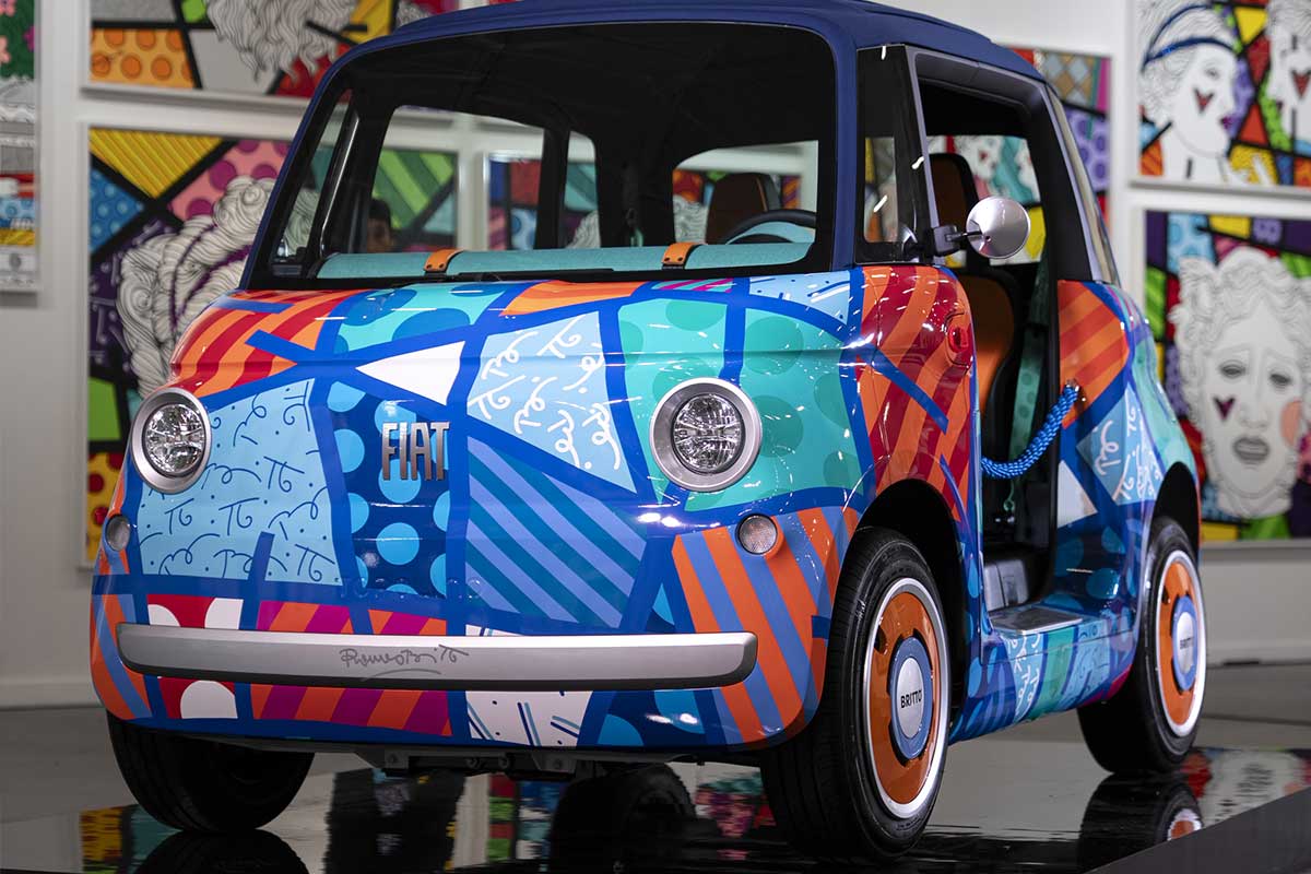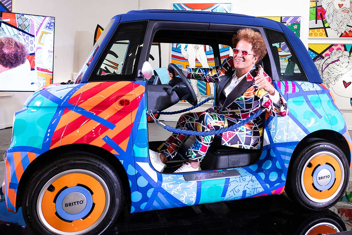 Britto, maestro del arte pop contemporáneo, es conocido por sus colores brillantes, su universo alegre y su peculiar forma de transmitir optimismo y amor a través de su obra. Su colaboración con Fiat parece casi natural. Juntos han creado un diseño que simboliza exactamente lo que el Topolino quiere representar en Estados Unidos: color, buen humor y una nueva forma de desplazarse.