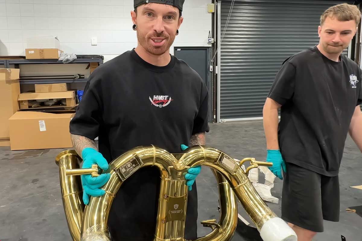 Plásticos reblandecidos, varilla de nivel cocida, separador de aceite y mangueras derretidos, capó de plexiglás dañado, escudo térmico dañado. El SVJ no se estaba esfumando, pero estaba muy quemado. La solución de Mat Armstrong: abandonar el titanio y volver a un escape Valvetronic de acero inoxidable (mismo diseño, metal más tolerante). Armstrong sustituye :