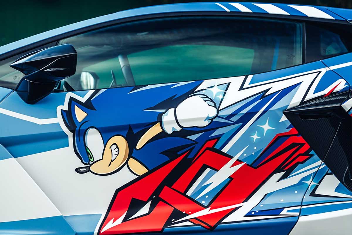 Lo que inmediatamente llamó la atención fue, por supuesto, la librea especial. Sobre la carrocería del Lamborghini Revuelto, Sonic the Hedgehog, icono mundial del videojuego, corre a toda velocidad, acompañado esta vez por Shadow, su alter ego más oscuro y agresivo. Los dos personajes parecen fundirse literalmente con las tensas líneas del superdeportivo italiano.