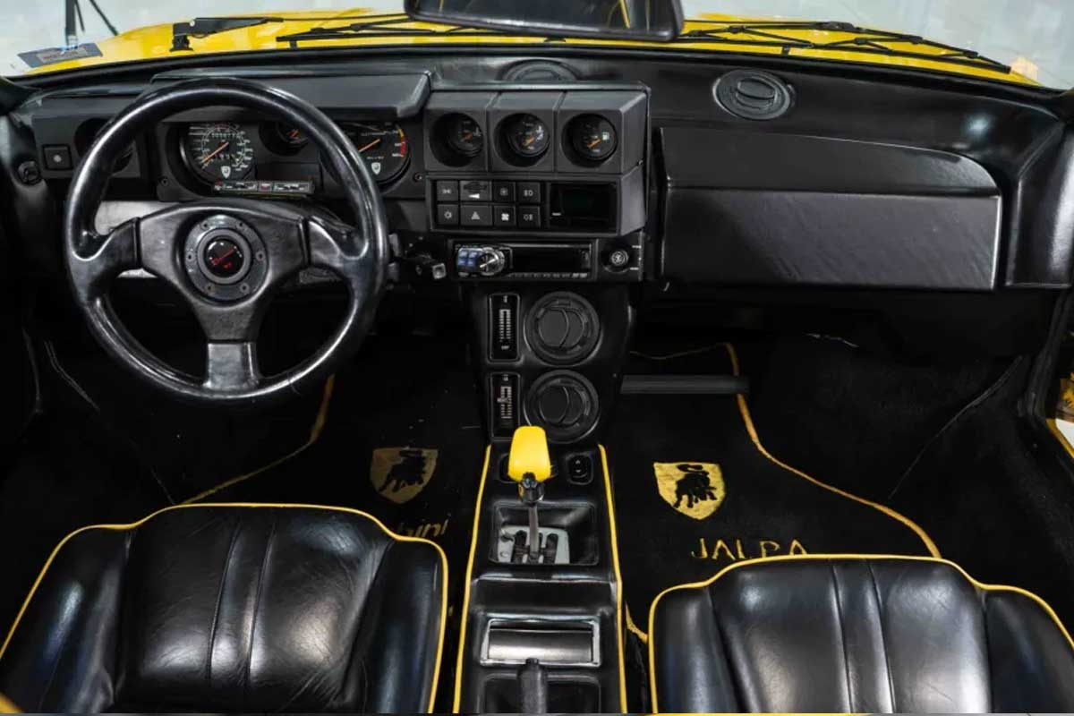 Bajo el capó (o mejor dicho, tras los asientos) había un motor V8 atmosférico de 3,5 litros que producía 255 CV en su configuración original europea. Alimentado por cuatro carburadores Weber de la época, permitía al Jalpa acelerar de 0 a 100 km/h en unos 6 segundos y alcanzar una velocidad máxima de casi 250 km/h. El modelo ahora a la venta, sin embargo, ha sido reconvertido a inyección electrónica de combustible, una modificación reversible que mejora la fiabilidad y la usabilidad sin traicionar el espíritu del modelo. Una caja de cambios manual de cinco velocidades transmite la potencia a las ruedas traseras, recordándonos que se trata de un Lamborghini de otra época.