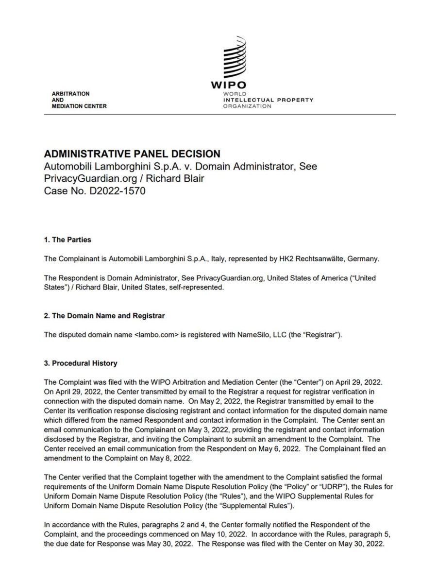 El resultado: Lamborghini recupera Lambo.com gratuitamente, sin haber pagado un solo dólar (salvo probablemente en honorarios de abogados). El inversor, en cambio, se va con las manos vacías. Pierde: