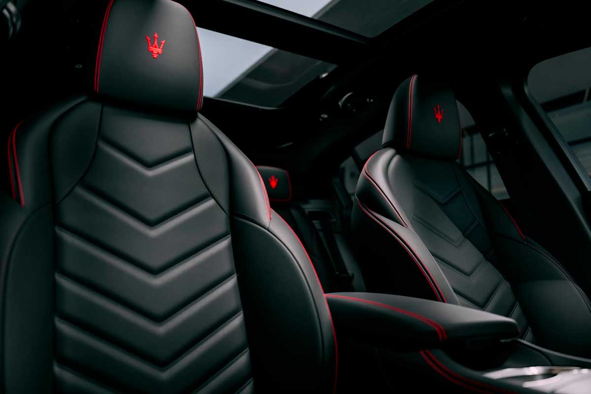 Maserati aprovecha la oportunidad para ampliar su gama de opciones de personalización. El programa Fuoriserie ofrece ahora 32 colores exteriores, incluyendo 6 nuevos, y nuevos interiores en piel Ghiaccio, Nero/Rosso o Nero/Giallo. Hay tres niveles de acabado disponibles, incluyendo uno específico para la versión eléctrica. El interior mantiene la mezcla típica de Maserati de lujo discreto, deportividad y tecnología bien integrada.