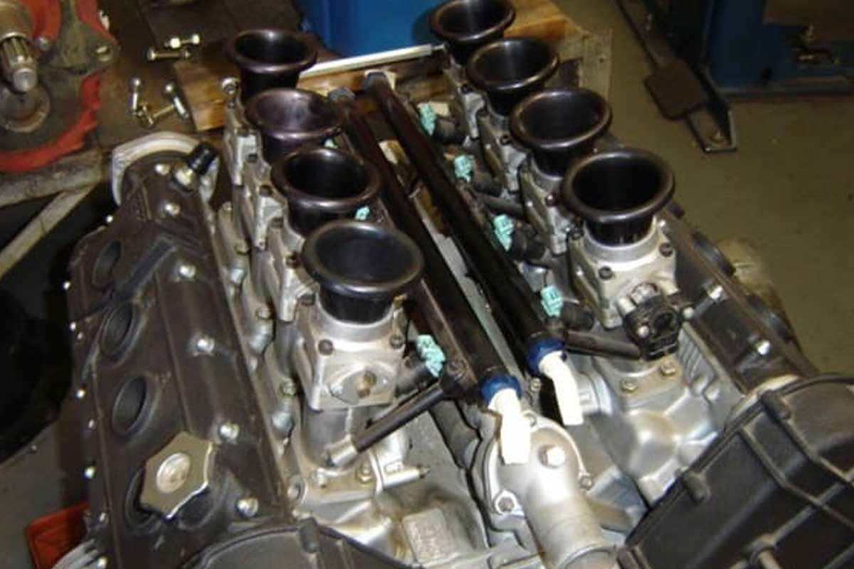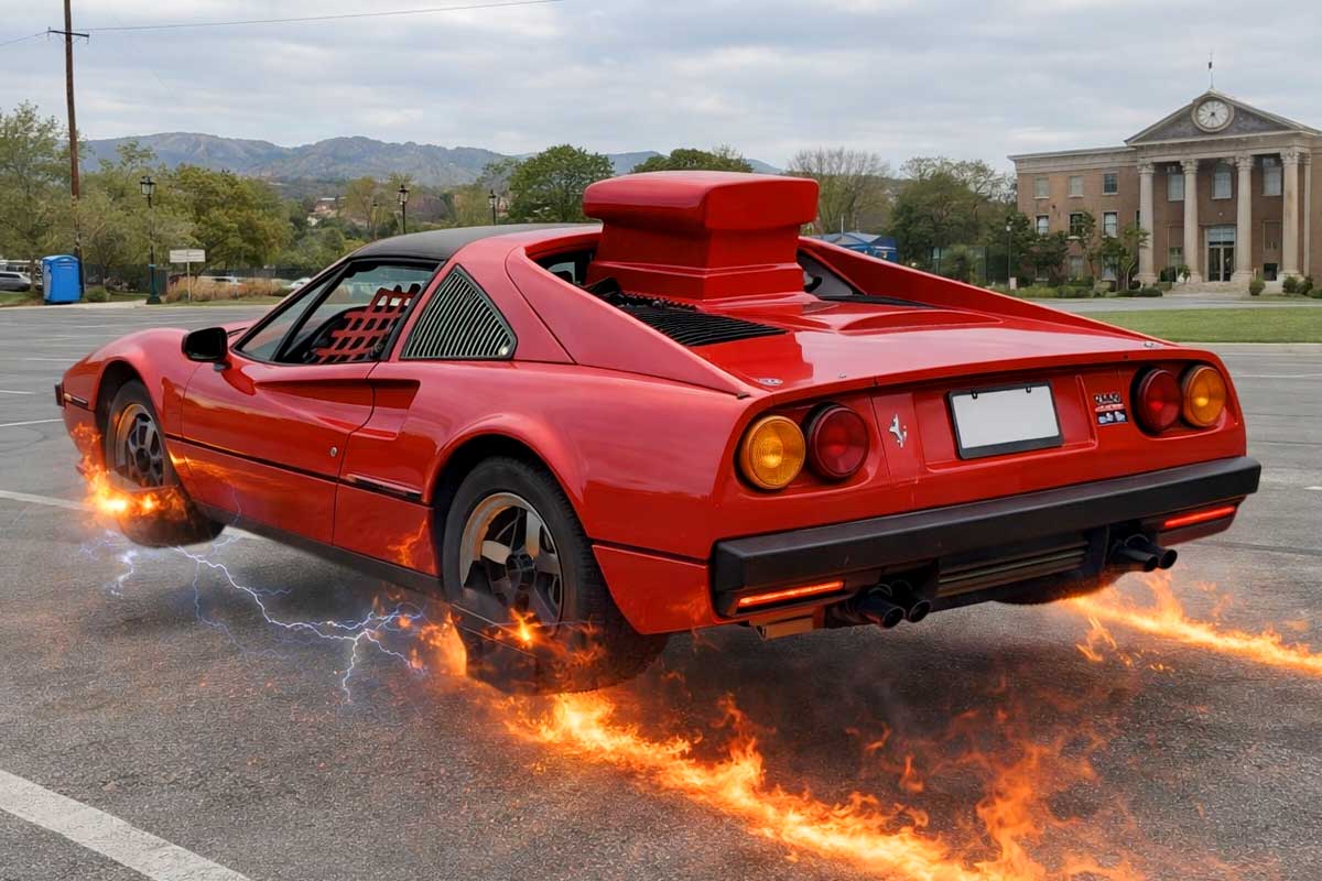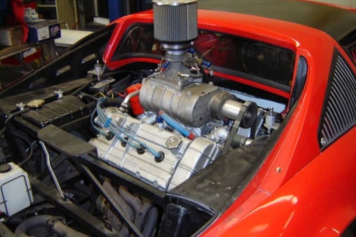 C’est vers 1986 que Bill Pound s’est lancé dans cette préparation, avec l’objectif de créer une machine capable de rivaliser avec des voitures bien plus modernes en hillclimb. Le moteur est le fameux F106AB V8 à 90° 3.0L 16 soupapes, qui a été profondément modifié avec l’installation d’un compresseur volumétrique B&M, une injection mécanique Hilborn et une alimentation au méthanol, comme en Indycar. La puissance estimée se situe entre 450 et 480 ch (voire davantage selon certaines estimations non officielles), soit presque le double de la 308 d’origine qui culminait à 255 ch. La transmission a été remplacée par une boîte transaxle de Ferrari 328, mieux adaptée à l’augmentation de couple.