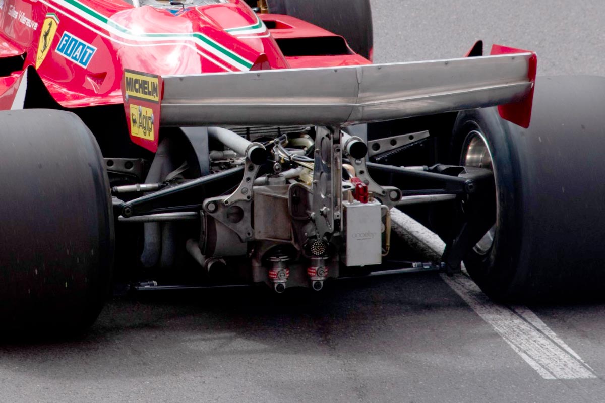 Ferrari est aussi gênée par l’architecture du moteur, le 12 cylindres à plat, qui empêche d’exploiter pleinement le phénomène d’effet de sol, introduit par Lotus quelques années plus tôt. De plus, Michelin focalise le développement de ses gommes sur les monoplaces à moteur Turbo, comme la Renault.