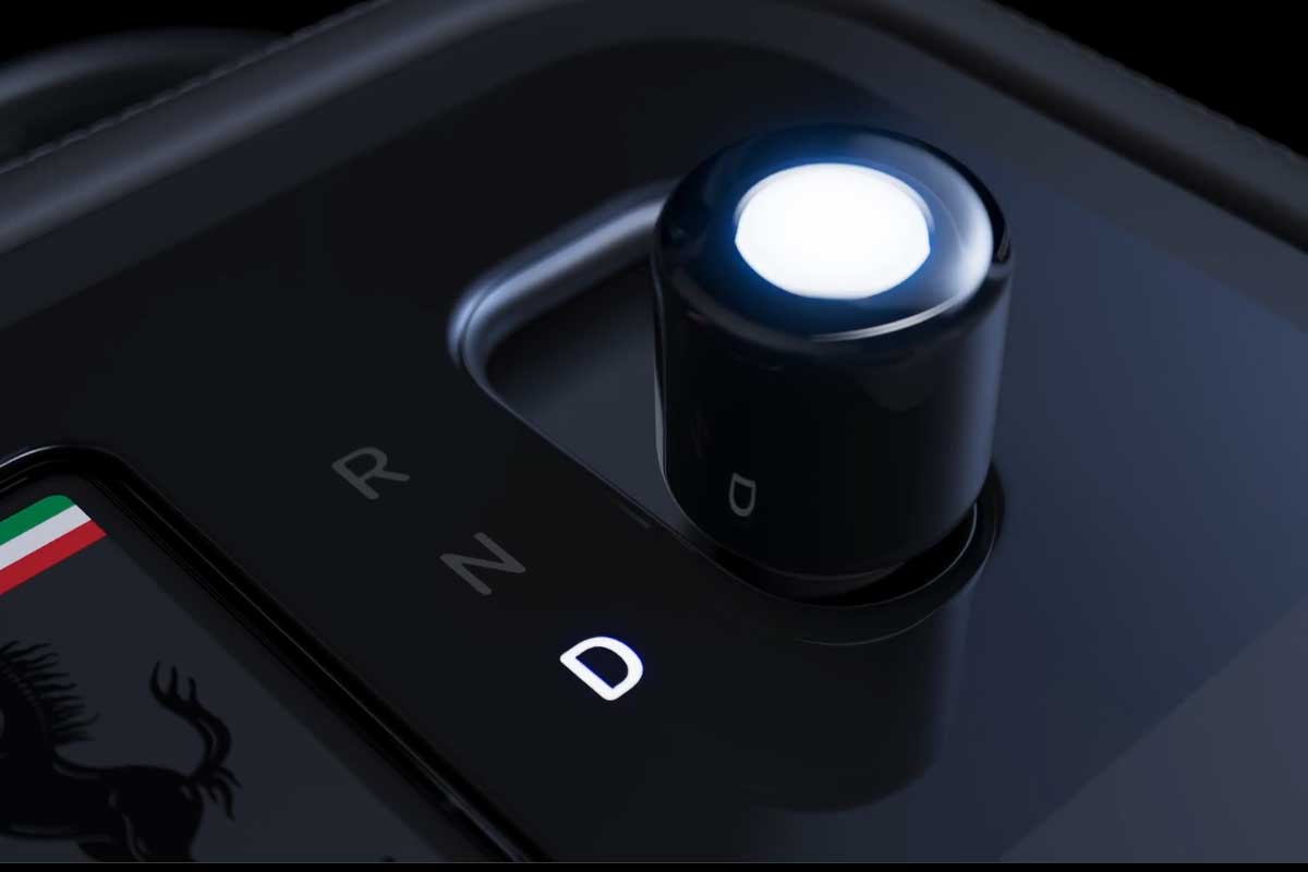Ferrari a également travaillé sur l’émotion du démarrage, un moment clé pour une marque privée de sonorité thermique. La Luce introduit ce que Maranello appelle une véritable « cérémonie de la clé ». La clé, en aluminium et verre, s’insère dans un logement dédié sur la console centrale. Une fois enclenchée, le jaune Ferrari emblématique semble se diffuser visuellement à travers l’interface, jusqu’au sélecteur de conduite.