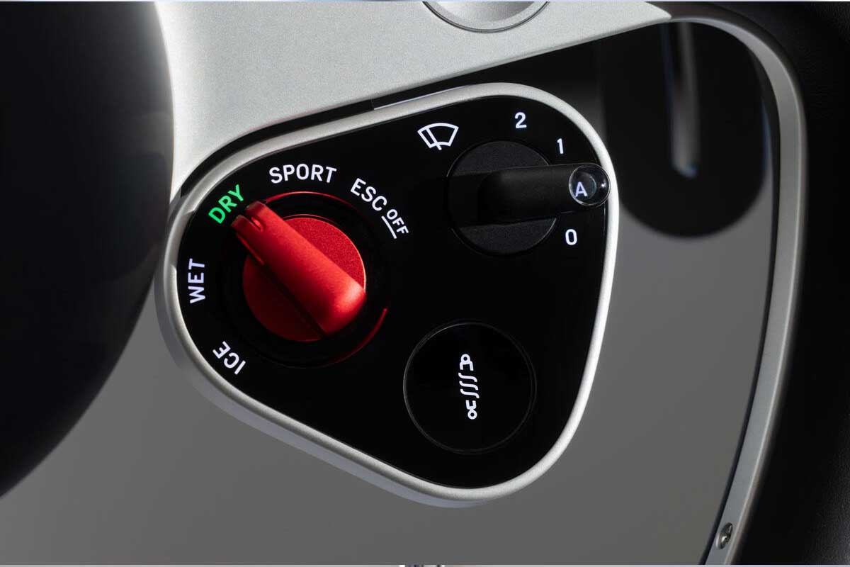 Même le mode Launch adopte une approche spectaculaire, avec une commande mécanique située au plafond, inspirée de l’aéronautique, et une interface qui se transforme visuellement lorsque la pleine puissance est libérée.