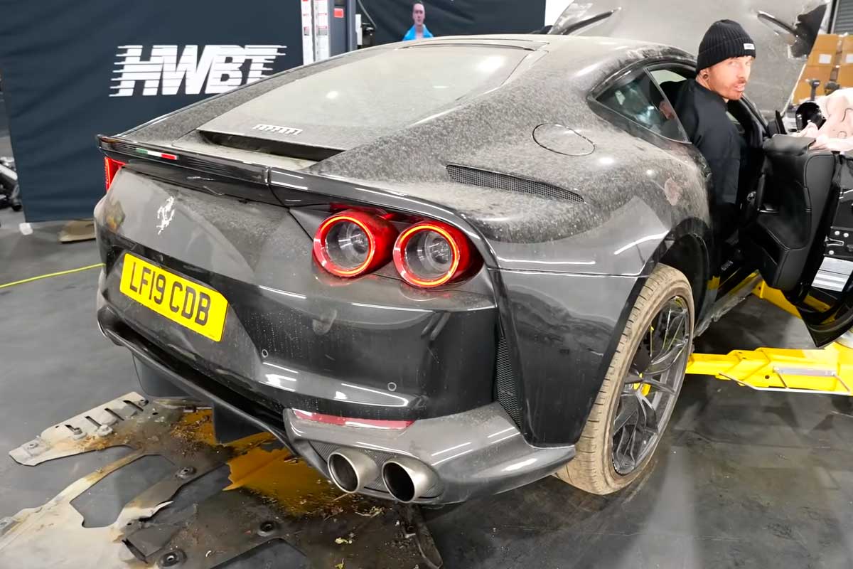 Acheter une Ferrari pas chère c’est souvent un coup de poker. Matt Armstrong est un habitué, il a trouvé la sienne lors une vente aux enchères de véhicules accidentés. Sans préciser le prix, ce serait la moins chère de toutes les Ferrari 812 du marché. L’annonce promettait presque l’impossible : une 812 accidentée, environ 9 000 miles au compteur (14 400 km), et surtout un descriptif rassurant « roulante ». Quand le camion livre la voiture, l’illusion fonctionne une seconde puisque de l’arrière, elle paraît presque présentable. Mais dès qu’on la fait rouler et qu’on la remet face au garage, la réalité est différente : tout l’avant a encaissé un gros choc. Et au-delà des plastiques, ce sont les détails qui inquiètent les plus aguerris… parce qu’une Ferrari peut pardonner un pare-chocs, pas un moteur.