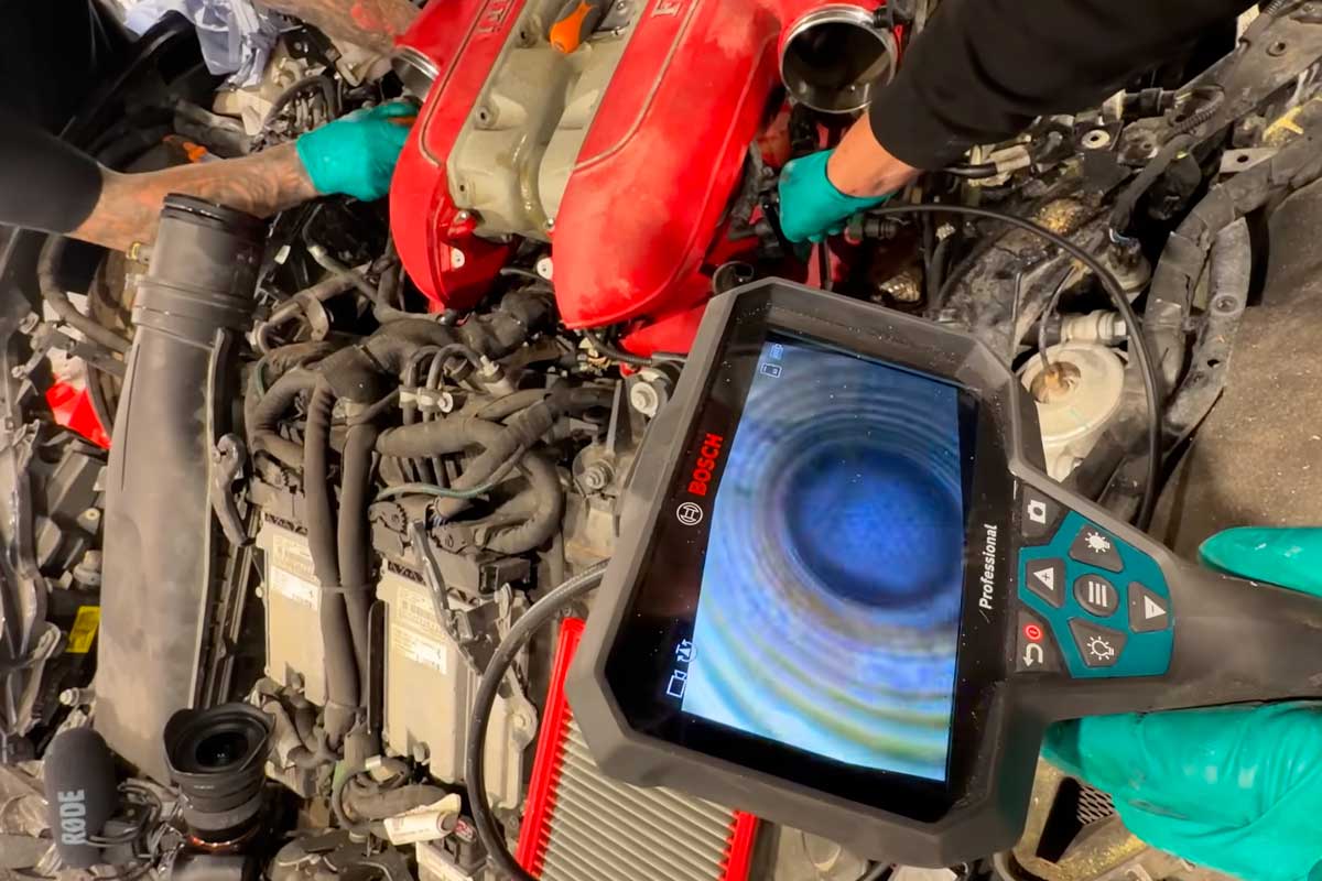 La méthode est radicale : déposer les bougies, une par une, et inspecter chaque cylindre avec une caméra. Sur une 812, ça veut dire douze fois la même opération. La tension retombe progressivement : rien de boueux, rien de noyé. Les bougies paraissent normales. Les cylindres semblent propres. C’est une bonne nouvelle… mais pas encore la fin.