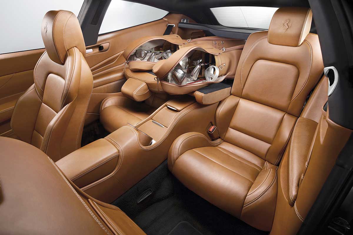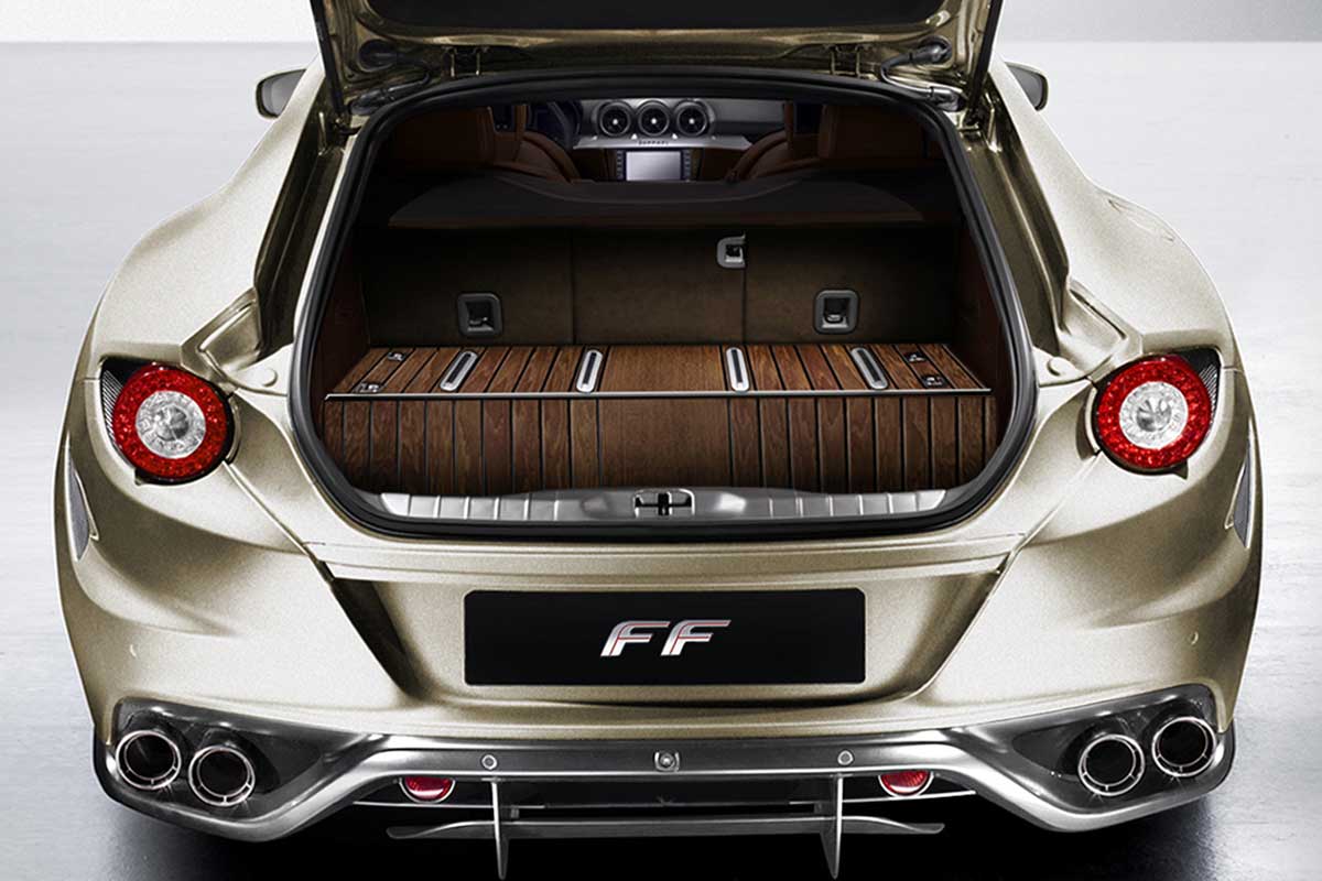 Contrairement aux Ferrari 2+2 traditionnelles comme la 612 Scaglietti, la FF adoptait un format shooting brake. Résultat : de vraies places arrière capables d’accueillir deux adultes, et un coffre de 450 litres (jusqu’à 800 litres banquette rabattue).
