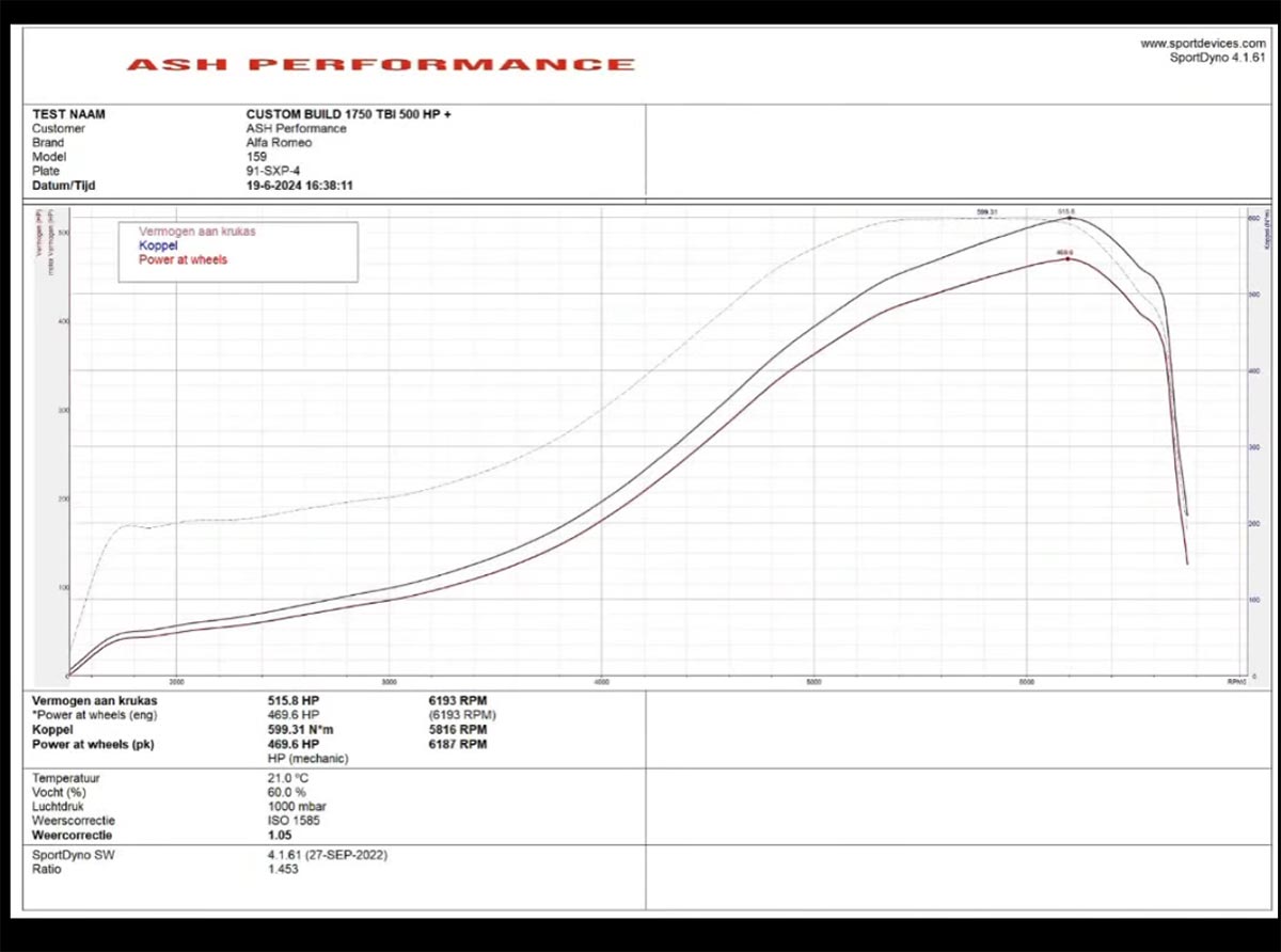 Inoltre, è stato montato un sistema di iniezione di acqua-metanolo che migliora la combustione, limita le temperature e consente di aumentare la pressione di sovralimentazione in tutta sicurezza. Il risultato di tutte queste modifiche è una potenza misurata sul banco di prova di 515 CV e 599 Nm di coppia, a testimonianza del livello di preparazione e di efficienza dell'assemblaggio.