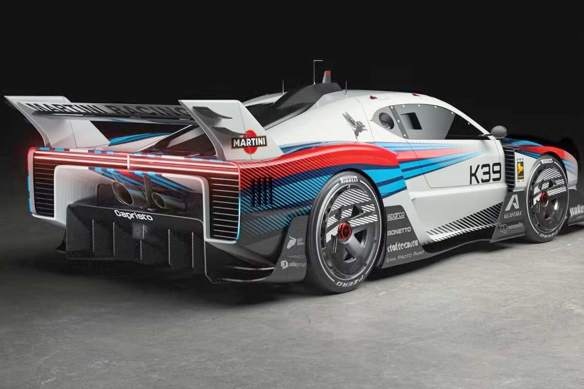 Il suo design si basa sull'iconica silhouette Martini Racing, ma trasposta nel futuro: carrozzeria in fibra di carbonio, parafanghi scolpiti, linee affilate e aerodinamica curata nei minimi dettagli.