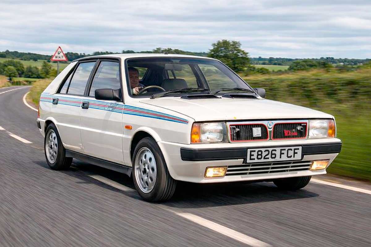 Le famose strisce Martini potrebbero far pensare a una personalizzazione tardiva. In realtà, si tratta di un'opzione di fabbrica, introdotta nel 1984 per celebrare il successo di Lancia nel Campionato del Mondo Rally con la 037. Minigonne laterali, logo HF rosso sulla griglia anteriore, poi un restyling nel 1986 con una nuova griglia che incorporava i fendinebbia e cerchi in lega a otto fori. Ma non tutto era funzionale. Alcune prese d'aria erano puramente decorative, come la griglia inferiore, che non serviva a raffreddare il motore, o una delle due prese d'aria sul cofano, che semplicemente non veniva utilizzata.