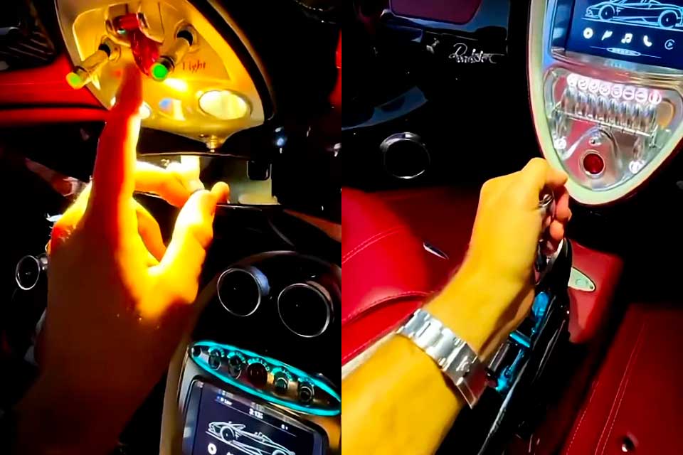 Dimenticate il normale pulsante start-stop della vostra auto (o la chiave nel quadro per le auto più vecchie). In una Pagani, tutto inizia con una chiave artistica, ricavata da un blocco di alluminio a forma di mini Huayra. Il conducente la inserisce nel contattore centrale, quindi attiva manualmente i sistemi elettrici, le spie si accendono, i contatori analogici prendono vita e la supercar inizia a svegliarsi. Ma c'è dell'altro!