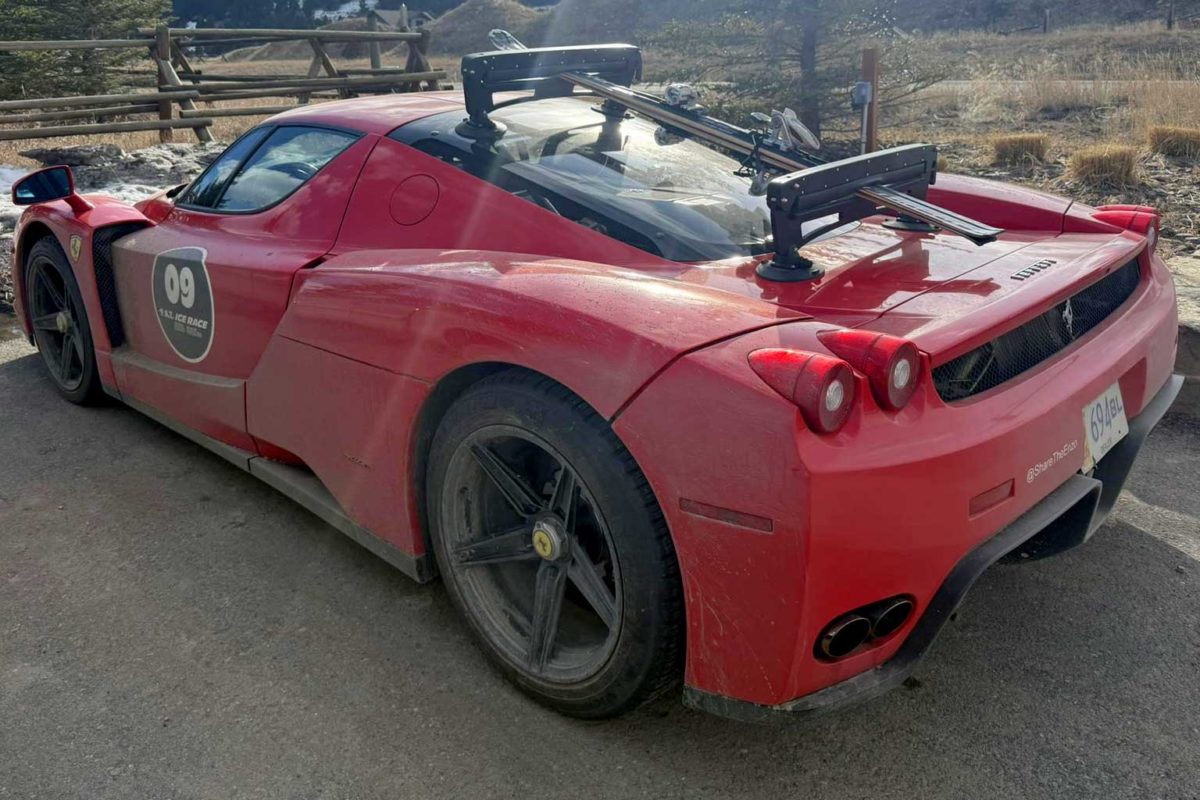 ルーフにスキーラックを取り付けたこのフェラーリ・エンツォは、すでに50,000kmを走行......そしてオーナーは新たな目標を掲げた。