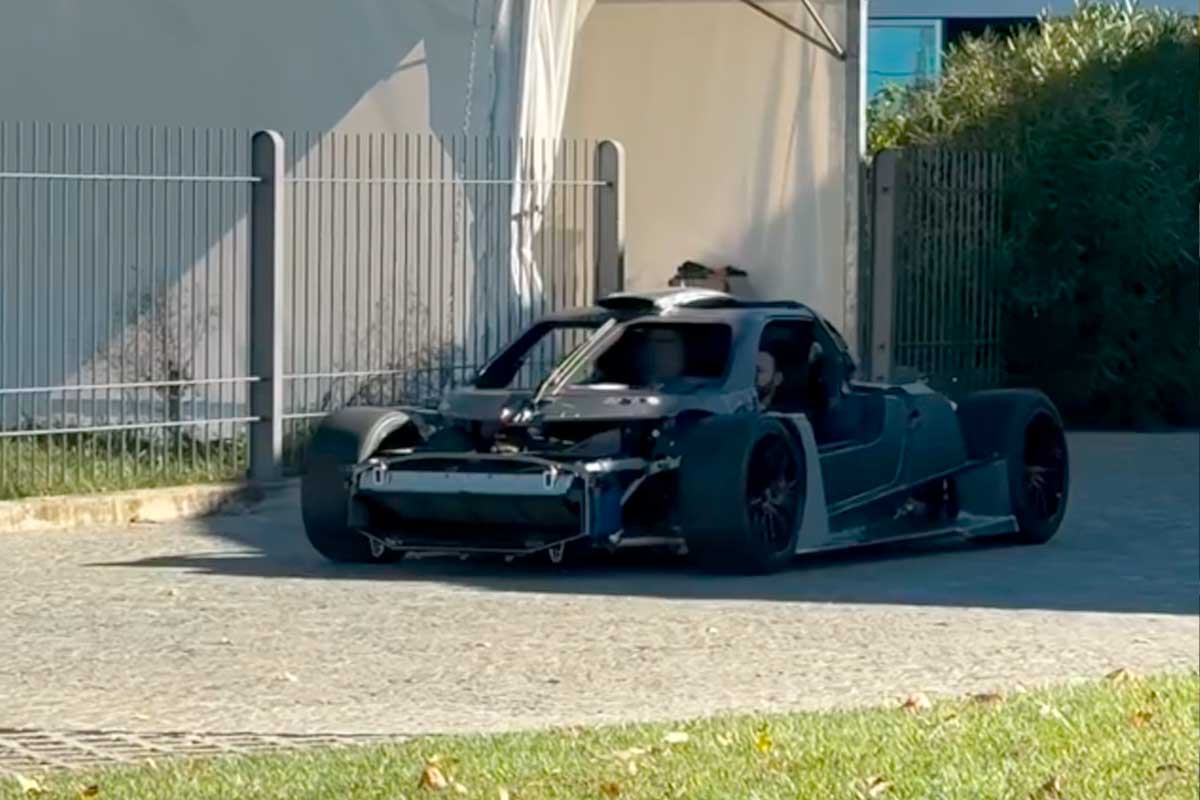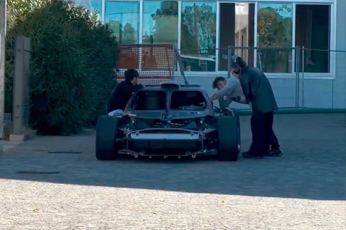 すべては工場の近くを散歩することから始まる。 パガーニ.インスタグラムのアカウント「monaco_cars_luxury_」は、「クラシック」なハイパーカーよりもはるかに荒々しく乾いた、異常に激しいゴロゴロ音に惹かれたと語る。即座に反射的にポケットからスマートフォンを取り出した。突然、門を曲がったところに、幅が広く、車高が低く、アグレッシブなプロポーションの、マントに覆われたプロトタイプが現れた。