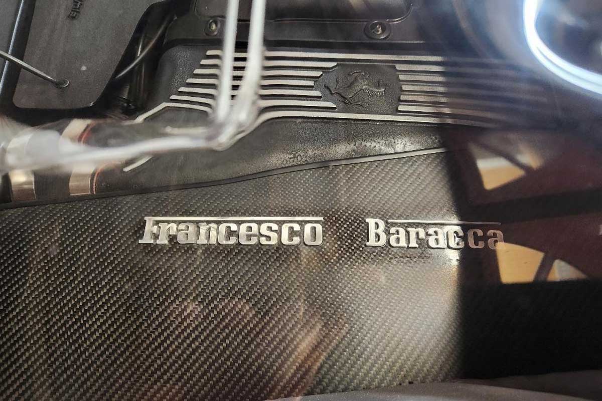 インテリアは、フェラーリの精神的原点へのオマージュとして、航空からインスピレーションを得ている。第一次世界大戦時のイタリアのエース、フランチェスコ・バラッカの機体には、戦前に彼が所属していた騎兵隊にちなんで、カヴァリーノ・ランパンテが描かれていた。戦時中に撃墜されたバラッカの両親は、1920年代初頭、アルファロメオのドライバーだったエンツォ・フェラーリに勝利の後に会い、息子の思い出へのオマージュとして、また幸運を祈るために、自分の車に跳ね馬の紋章を使うべきだと提案したという話である。さらに、この車のイグニッション・キーは、航空用スイッチの形に改造され、その上には黒い跳ね馬が描かれていた。