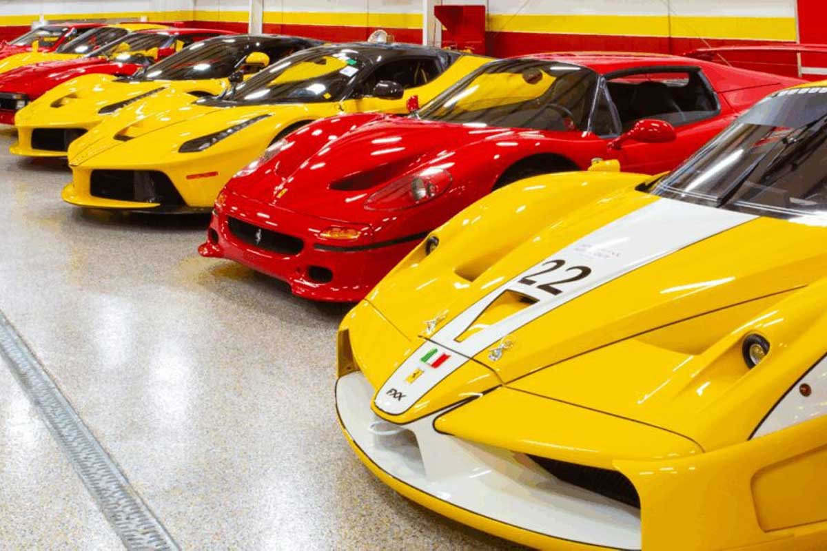 彼のガレージには、288GTO、F40、F50、エンツォ、ラ・フェラーリ、さらにはFXXサーキットカーといった絶対的なアイコンが、すべてイエローで保存状態も並外れている。中にはわずか数百キロしか走っていないものもある。