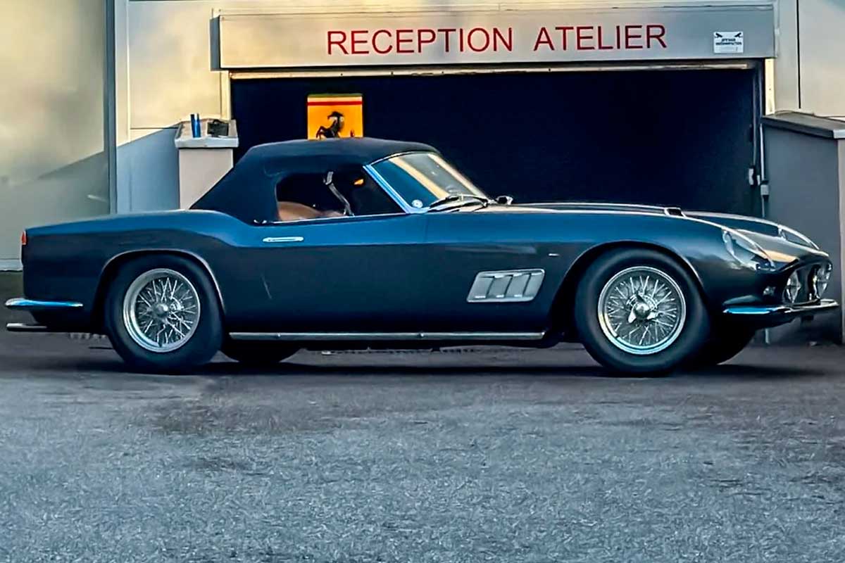 公開された写真には、その場所がはっきりと写っている。地元ではよく知られた、リヨン地区のフェラーリ公式サービスセンターだ。博物館でもなければ、コンクール・デレガンスでもない。単なる作業場の中庭で、簡単なオーバーホールを待つかのように車が置かれているだけだ。