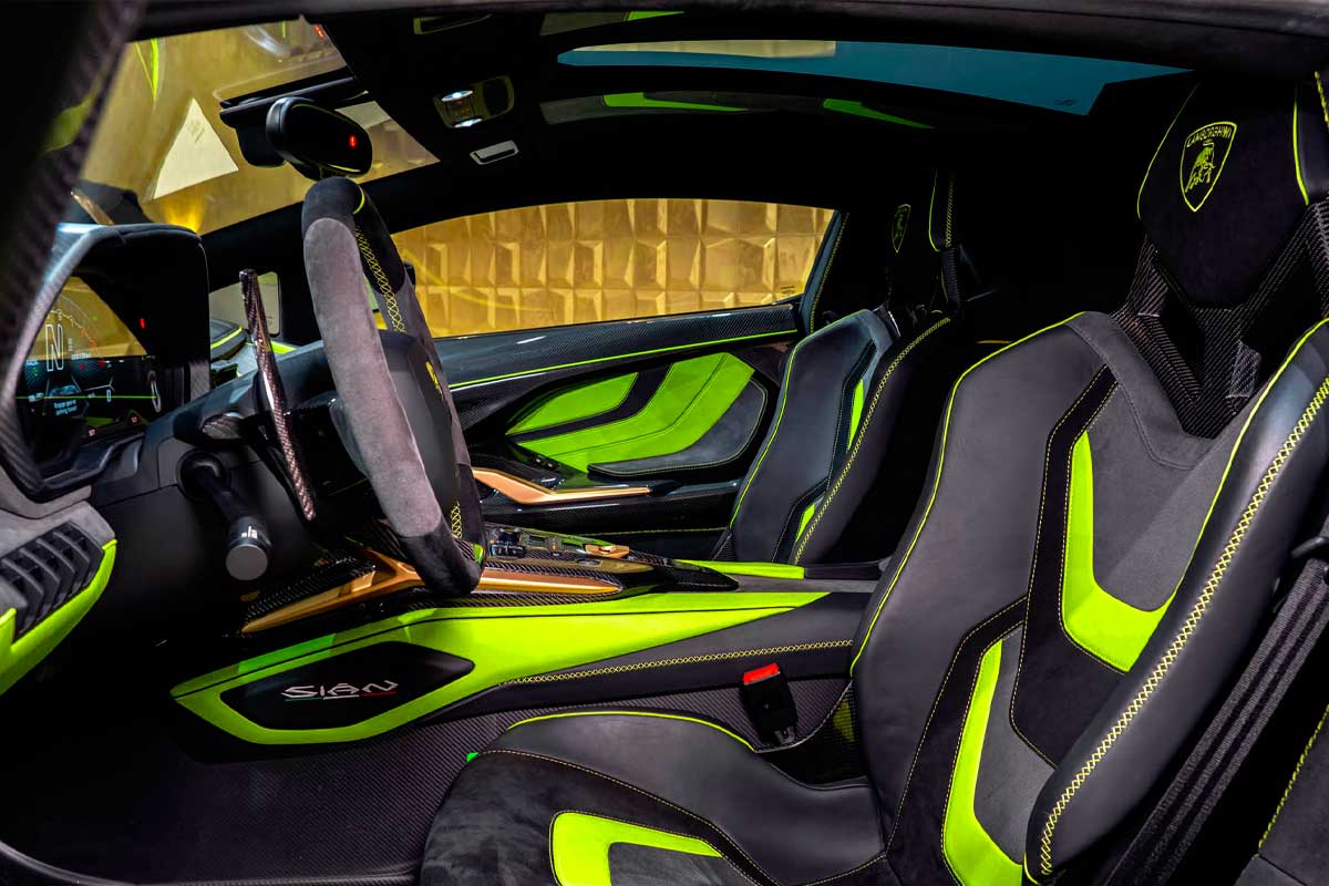 Siánは単なる技術的なショーケースではなく、ビジュアル的なマニフェストでもある。 レブエルト (最新の マニフェスト・コンセプト 将来のランボルギーニにインスピレーションを与えるはずだ)。露出したカーボンのボディワーク、シャープなライン、稲妻のような形のヘッドランプは、ほとんど非現実的な魅力を与えている。