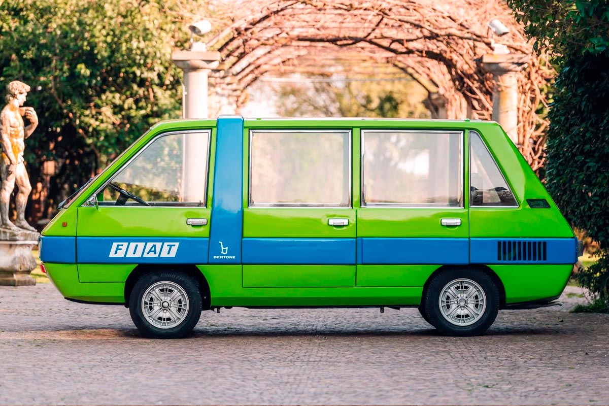 1970年代、ジャンニ・アニエッリはイタリア全土にフィアットの工場を大規模に拡張していた。一流の訪問者(実業家、政治家、パートナー)を堂々と迎えるために、彼は自分のイメージにふさわしい車を求めていた。フィアット600ムルティプラ、そしてフィアット850 Tファミリアーレをベースに何度か試作を重ねた後、アニェッリはさらに一歩踏み込むことを決意した。彼はベルトーネ、とりわけガンディーニに、本物の “VIPバス ”の製作を依頼した。その結果、1975年のトリノモーターショーで発表されたのは、未来的で幾何学的なミニバスであり、そのデザインはほとんど残忍主義的であったが、ユニークな体験を提供するために細部まで考え抜かれていた。.