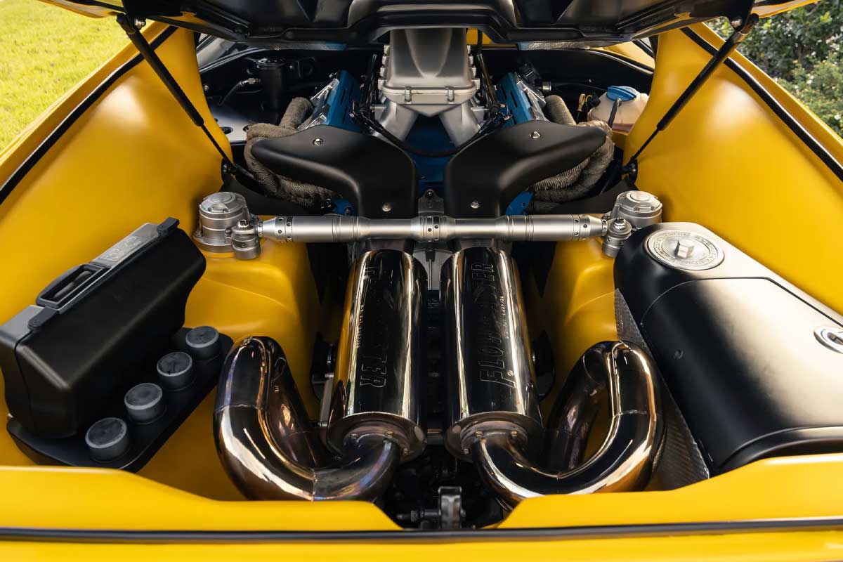 ワイルドに生まれ変わったADRNLNのラインには、もはやオリジナルのフォード製V8は搭載されていない。代わりにリングブラザーズが選んだのは、ウェグナー・モータースポーツが用意したGM製6.2リッターLS3エンジンだ。その結果、パンテーラのようにミッドリアマウントされた600bhpのモンスターが誕生したが、オリジナルのデ・トマソのパワートレインとの技術的なつながりはない。