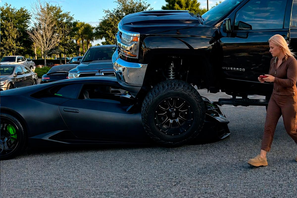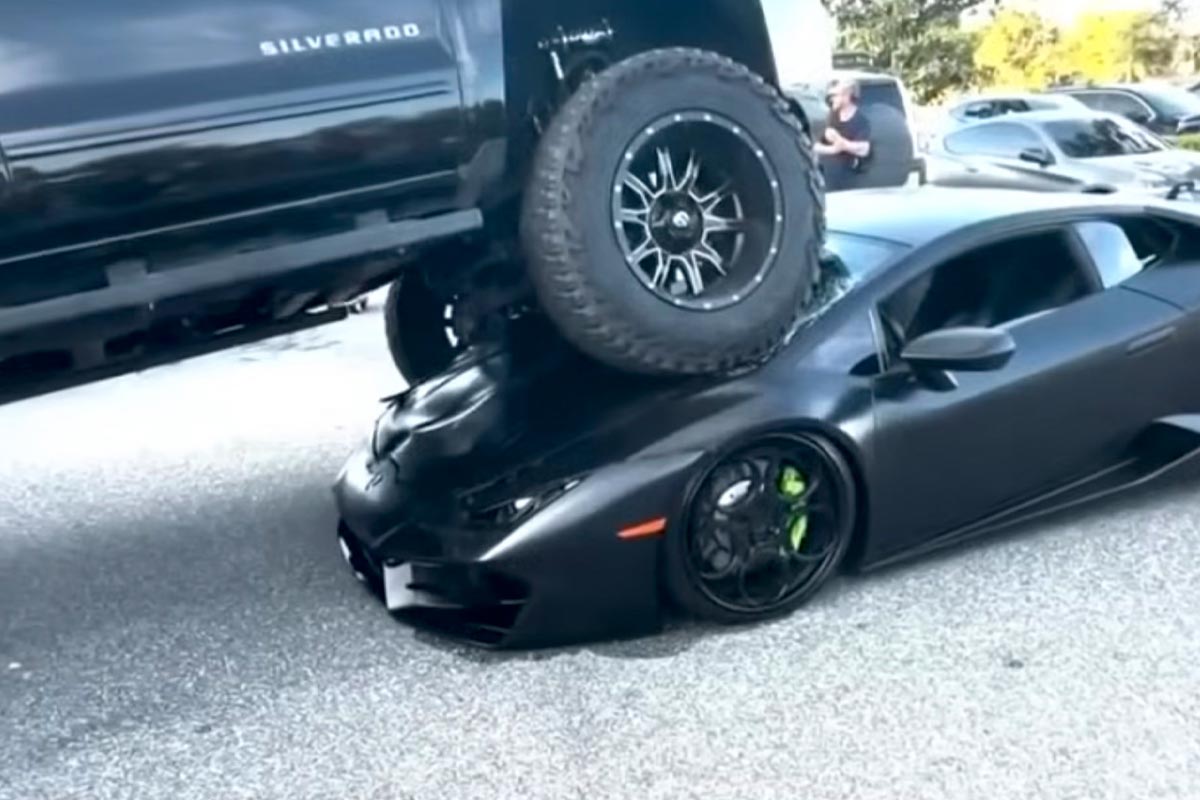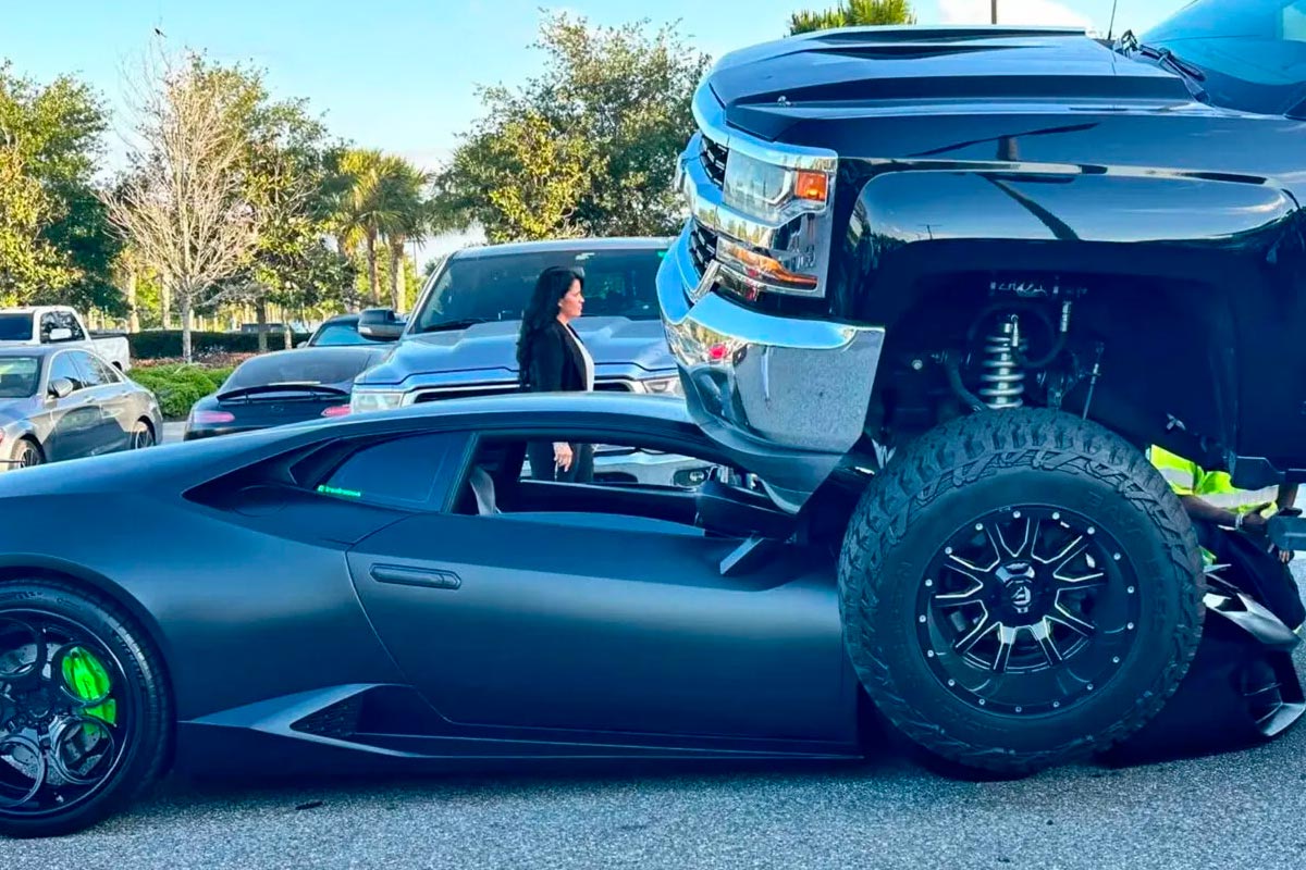 On pourrait croire à une vidéo générée par intelligence artificielle ou à une mise en scène digne d’un show de monster trucks. Pourtant, la scène est authentique. Sur un parking en Floride, une conductrice au volant d’un imposant pickup surélevé a littéralement roulé sur une Lamborghini Huracán… sans même s’en rendre compte.