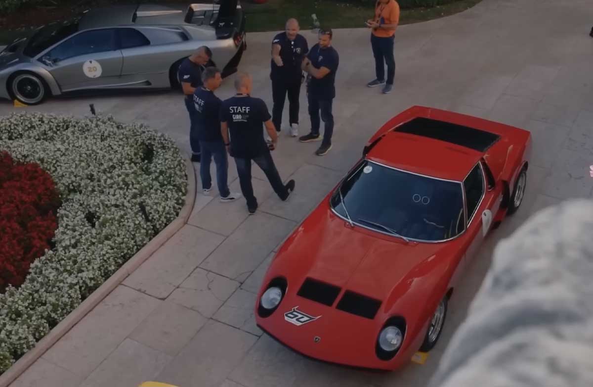 La scène se déroule à l’usine Lamborghini, et pas à n’importe quel moment : pendant les célébrations des 60 ans de la marque. Temerian explique que l’événement principal prévu pour les voitures modernes a été annulé à cause de fortes pluies et d’inondations en Italie. En parallèle, Lamborghini Polo Storico met sur pied un rallye de voitures classiques, une célébration dédiée aux modèles d’avant 2001, réunissant une vingtaine de voitures venues du monde entier.