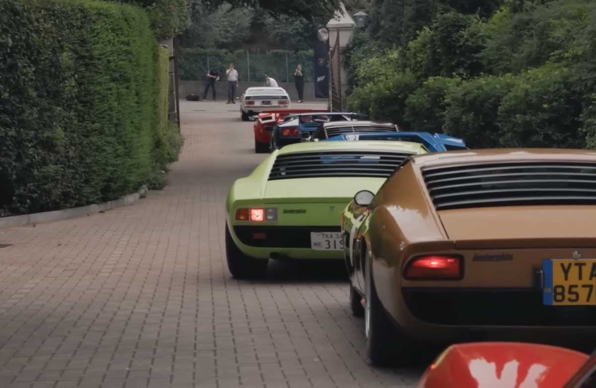 Conduire une Miura est une expérience sensorielle. Les sons, les odeurs, la présence mécanique. Et là, la Miura d’Eddie Van Halen ne roule pas seule : elle roule au milieu d’une vingtaine de Lamborghini, comme si l’histoire de la marque escortait l’histoire du musicien.