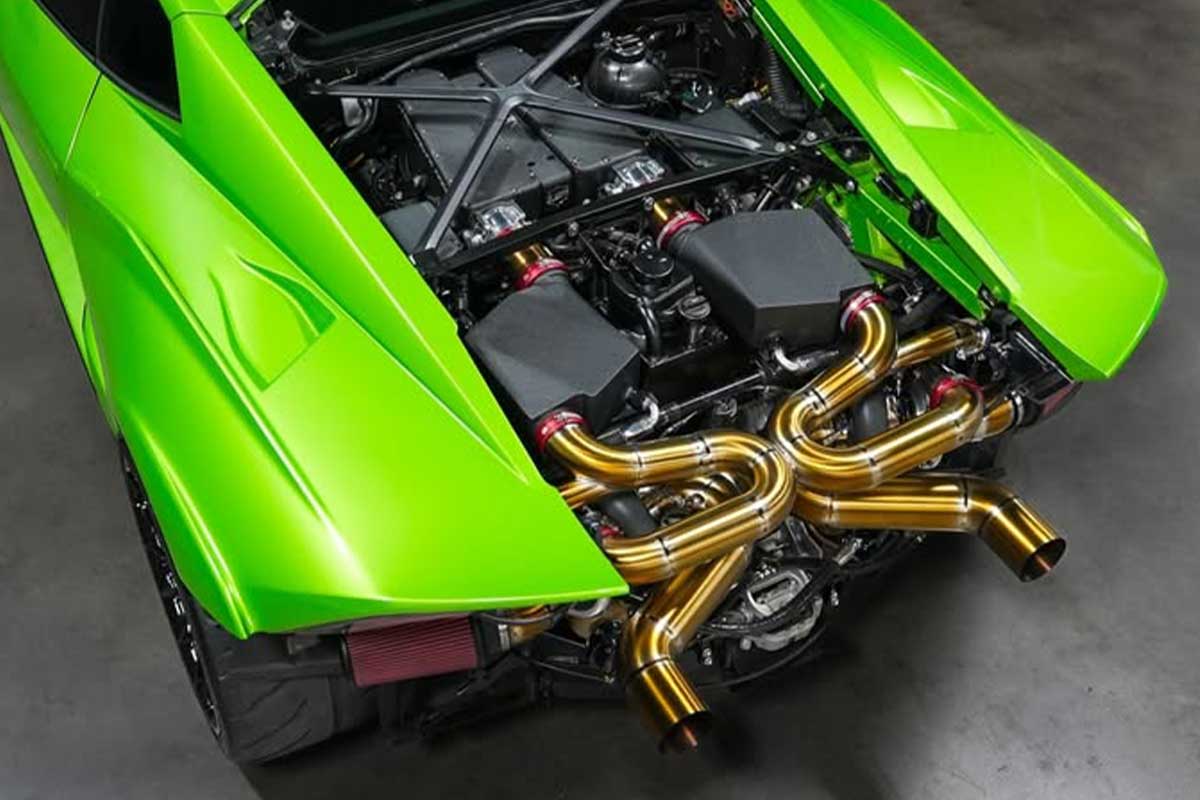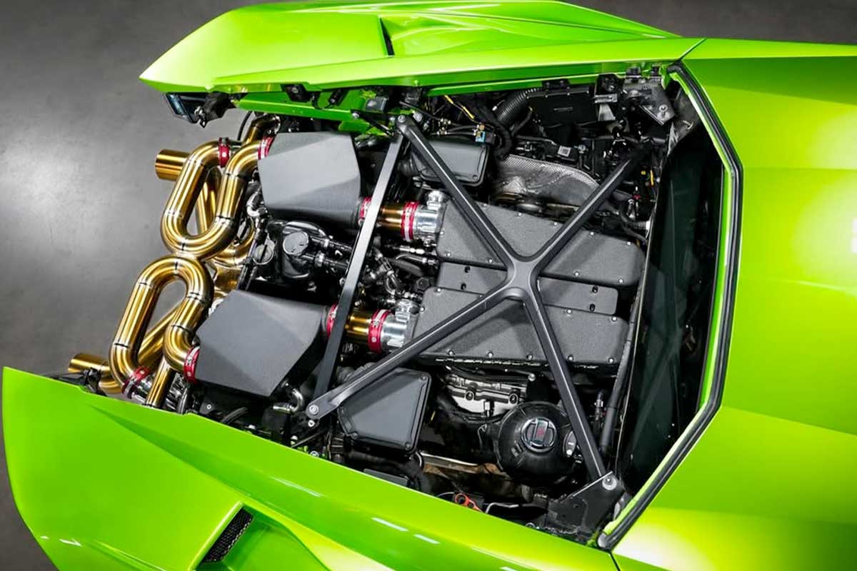 Le propriétaire a donc expédié sa STO chez Underground Racing, en Caroline du Nord, avec un objectif très précis : abandonner une configuration orientée pour les lignes droites à plus de 400 km/h, pour obtenir une voiture redoutable sur route, optimisée pour les accélérations violentes de 60 à 150 mph (97 à 241 km/h). Le préparateur américain ne s’est pas contenté d’ajouter deux turbocompresseurs. Le V10 a été intégralement reconstruit pour être capable de maintenir des températures de fonctionnement proches de celles d’une voiture de série, même dans un trafic dense et sous forte chaleur. Culasses usinées CNC, pistons sur mesure, bielles billet, admission spécifique et ligne en titane traitée thermiquement complètent un ensemble pensé pour encaisser l’extrême.