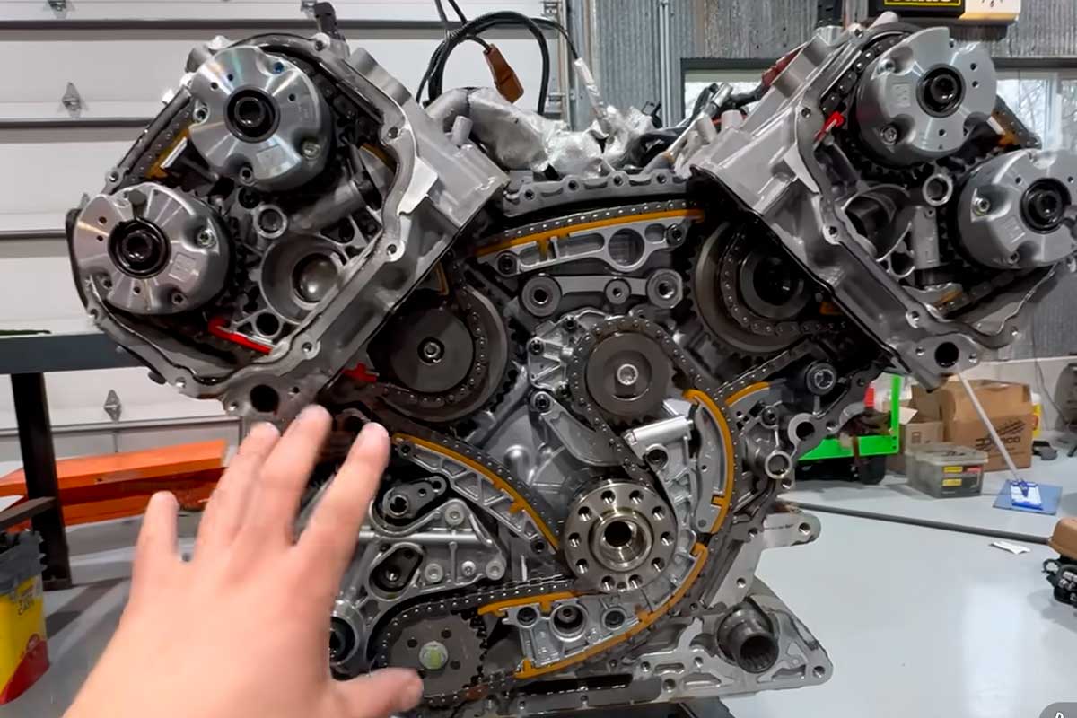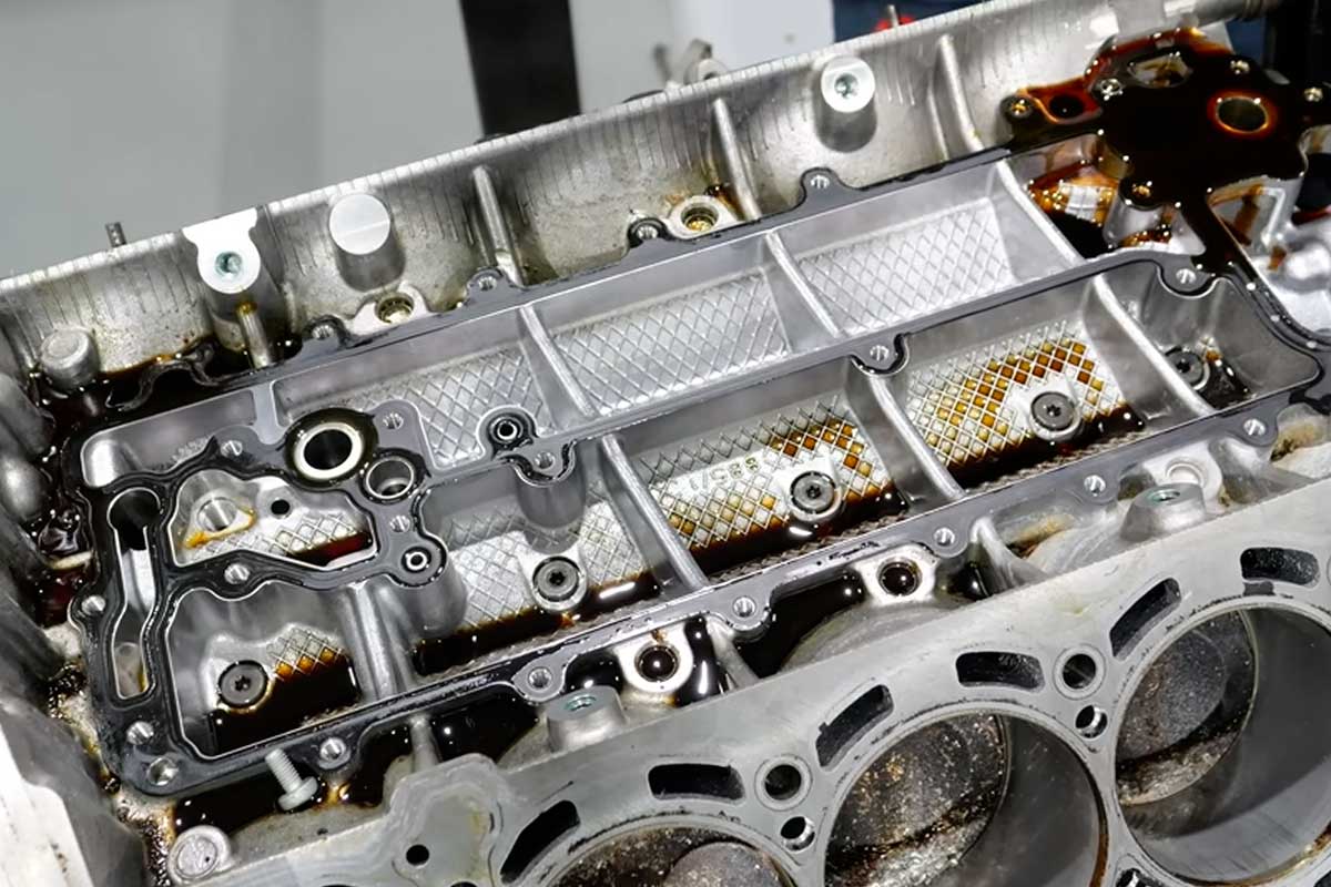 Eric retire les couvercles de distribution et révèle un système aussi complexe que ce qu’on imagine sur un V10 de supercar : plusieurs chaînes, des tendeurs, des rails, un empilement d’organes où tout semble pensé pour la précision. Jusqu’à ce moment où l’huile qui s’écoule a une mauvaise couleur. Ce cocktail n’annonce jamais rien de bon : soit le moteur a souffert d’un problème de refroidissement, soit il a subi une rupture interne qui a mélangé les circuits, soit la casse a ouvert un passage là où il n’en existait pas.