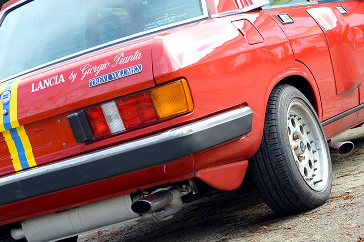 Quant au châssis, il s’agissait d’une berline à structure porteuse et carrosserie en acier, peinte aux couleurs historiques des voitures de sport Lancia : un rouge Montebello avec une bande centrale jaune et bleue. Elle était équipée de suspensions indépendantes à jambes de force MacPherson à l’avant et à l’arrière, de ressorts hélicoïdaux, de barres antiroulis et d’amortisseurs hydrauliques télescopiques. Un réservoir de 130 litres, destiné à alimenter les deux moteurs, était placé dans le coffre. La voiture pouvait atteindre une vitesse de 230 km/h, une vitesse alors réservée aux supercars.