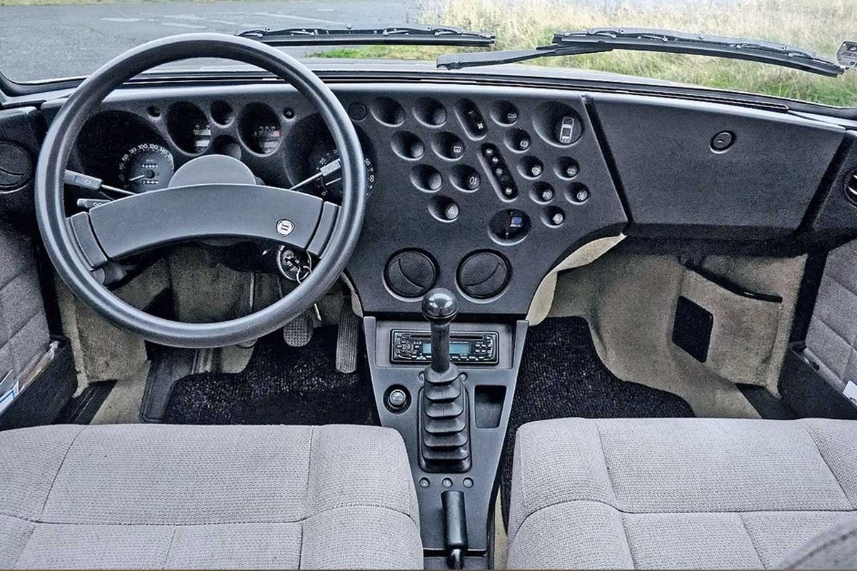 La Trevi se distinguait aussi par un intérieur audacieux, conçu par Mario Bellini, qui fut le designer des machines à écrire Olivetti et signera plus tard les galeries du Louvre. L’intérieur, résolument moderniste, suscita aussi son lot de moqueries de certains cadres qui se demandèrent qui avait bien pu valider ça : le tableau de bord très original se caractérisait par son design “lunaire”, composé d’une pléiade de compteurs et de boutons ronds, 29 au total, disposés tels des cratères. À défaut d’être pratique, le design avait le mérite de l’originalité et reçut plusieurs sobriquets, dont le “nid à poussière”.