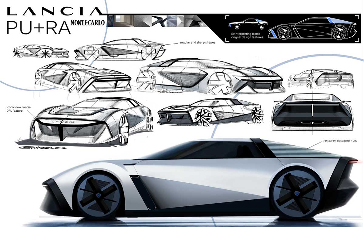 Alors qu’il est aujourd’hui trop facile de faire défiler sur les réseaux sociaux des voitures inventées en quelques secondes par l’intelligence artificielle, le travail patient et créatif des designers mérite plus que jamais d’être mis en lumière. C’est le cas du projet Lancia Pu+Ra Montecarlo, imaginé par le designer français Christopher Giroux, actuellement Senior Exterior Designer chez Ford en Allemagne.