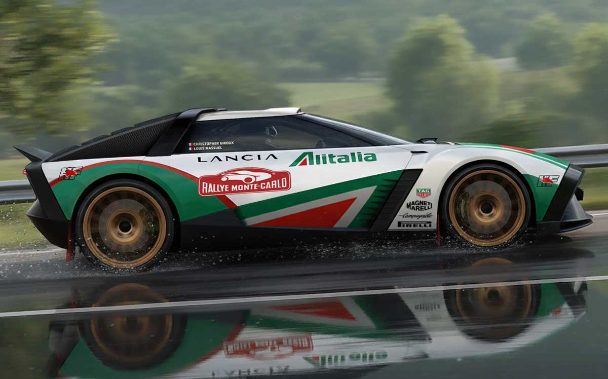 Impossible d’évoquer la Montecarlo sans se souvenir de son rôle dans la compétition. Son châssis avait donné naissance à la légendaire Lancia Rally 037, dernière propulsion à remporter un titre mondial en WRC. Pour célébrer cet héritage, Giroux a également imaginé une version rallye de son concept, parée de la mythique livrée Alitalia.