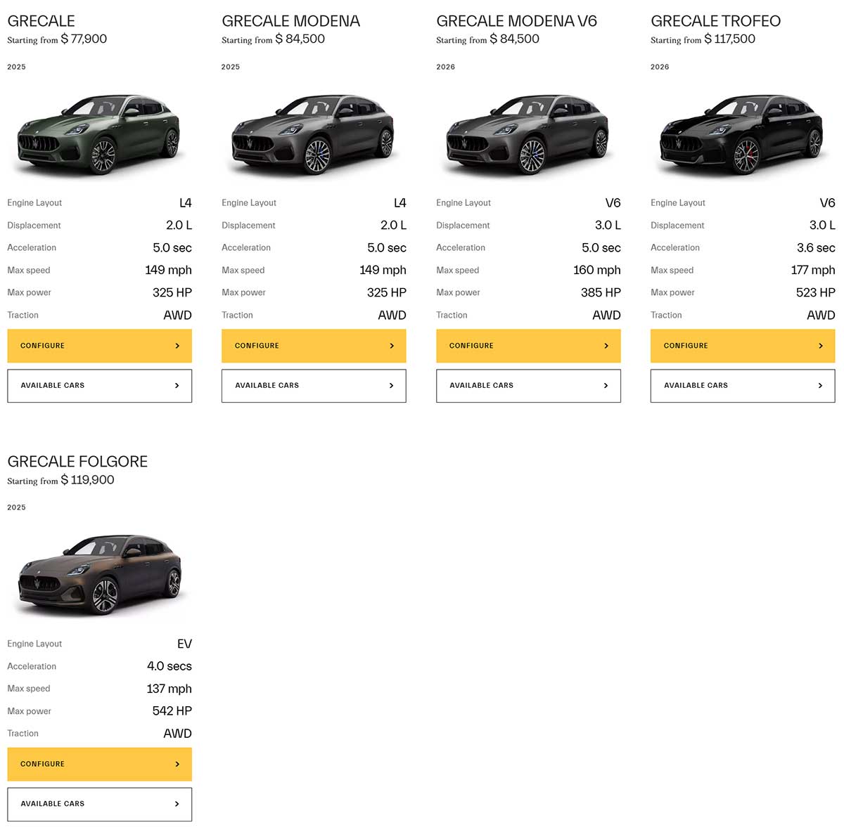 | Maserati Grecale Trofeo | $110,200 | $117,500 |