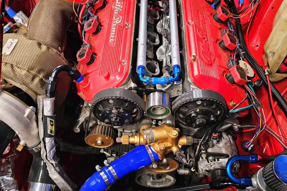 Een knap staaltje werk! Terwijl de “standaard” Busso V6-versies goed waren voor 183-188 pk, heeft deze setup naar schatting zo'n 300-400 pk, met een mogelijk koppel in de buurt van 400-500 Nm. Betrouwbaarheid is geen probleem, ook niet voor circuitgebruik, als de boost gematigd blijft (<1,2 bar), met een krachtige intercooler en versterkte brandstoftoevoer. Bij een hoger niveau worden gesmede zuigers en drijfstangen over het algemeen noodzakelijk.